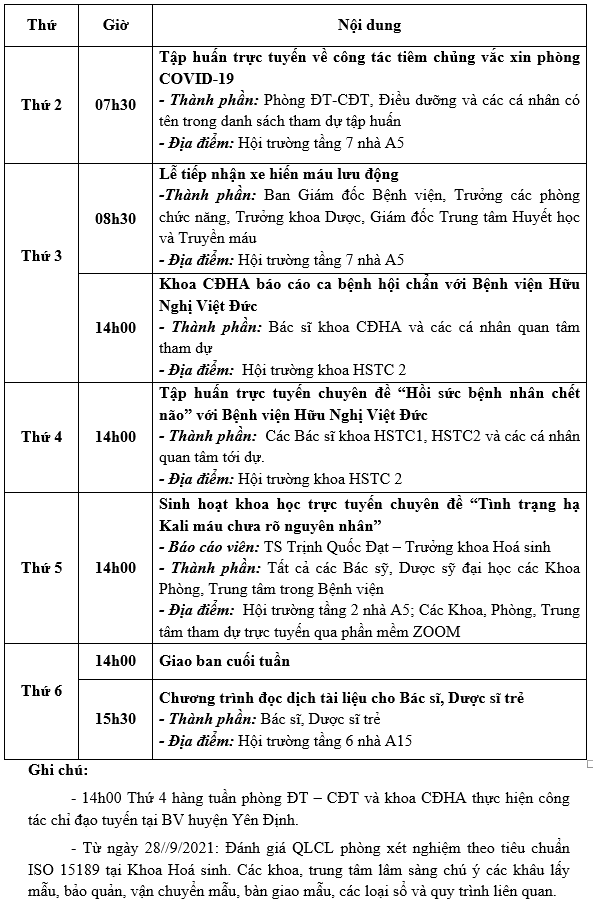 Lịch công tác tuần từ ngày 27/9/2021 đến ngày 01/10/2021 Tài liệu đi kèm:Lịch công tác tuần (File word)