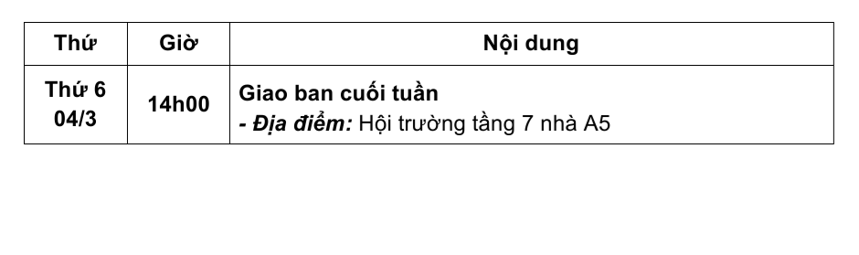Lịch công tác tuần từ ngày 28/02/2022 đến ngày 04/3/2022 Tài liệu đi kèm:Lịch công tác tuần (file word)