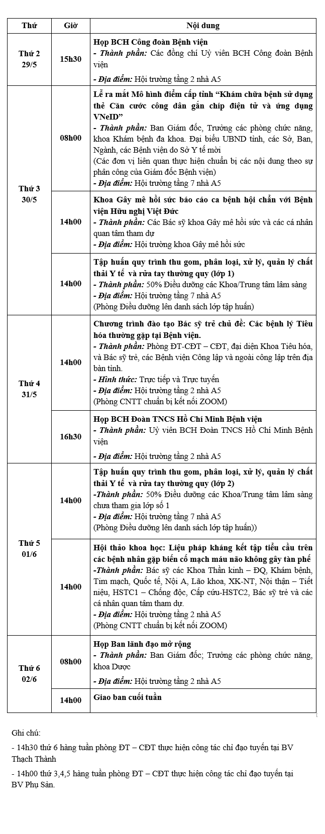 Lịch công tác tuần từ ngày 29/5/2023 đến ngày 02/6/2023 Tài liệu đi kèm:Lịch công tác tuần (File word)