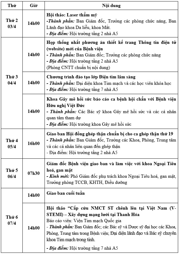 Lịch công tác tuần từ ngày 3/4/2023 đến ngay 7/4/2023