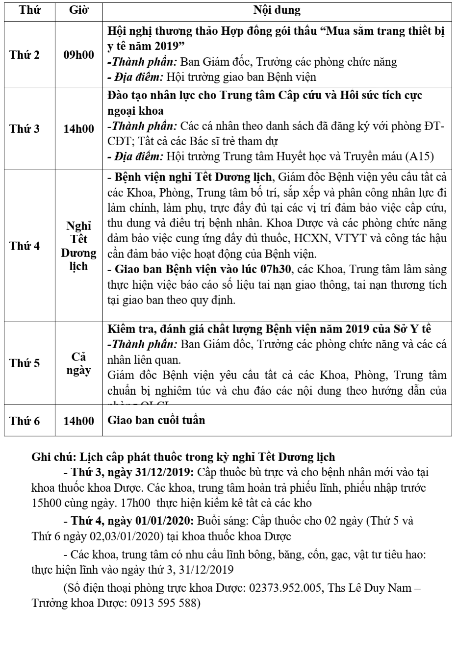Lịch công tác tuần từ ngày 30/12/2019 đến ngày 03/01/2020 Tài liệu đi kèm:Lịch công tác tuần (bản world)