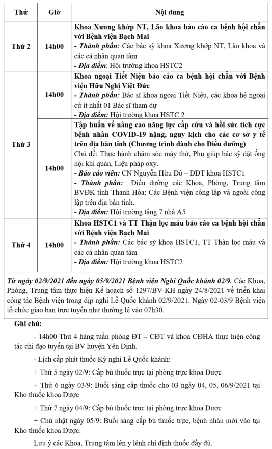 Lịch công tác tuần từ ngày 30/8/2021 đến ngày 05/9/2021 Tài liệu đi kèm:Lịch công tác tuần (File word)