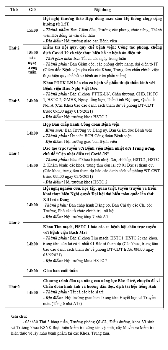 Lịch công tác tuần từ ngày 31/5/2021 đến ngày 04/6/2021 Tài liệu đi kèm:Lịch công tác tuần (File word)