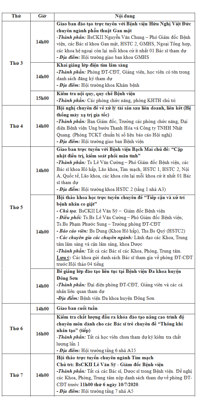 Lịch công tác tuần từ ngày 6/7/2020 đến ngày 11/7/2020 Tài liệu đi kèm:Lịch công tác tuần (File word)