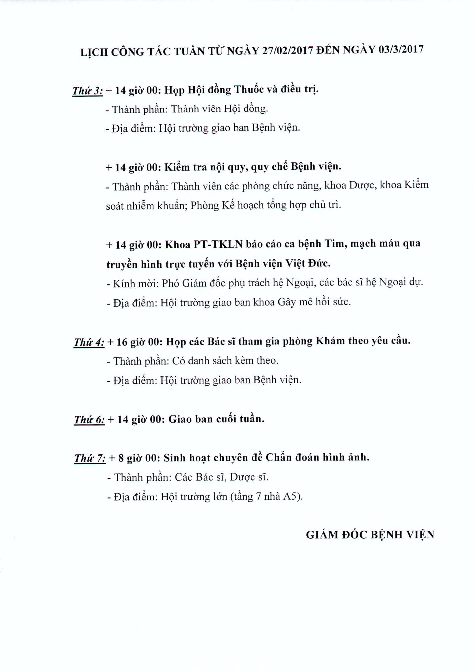 Lịch công tác tuần từu ngày 27/02/2017 đến ngày 03/03/2017