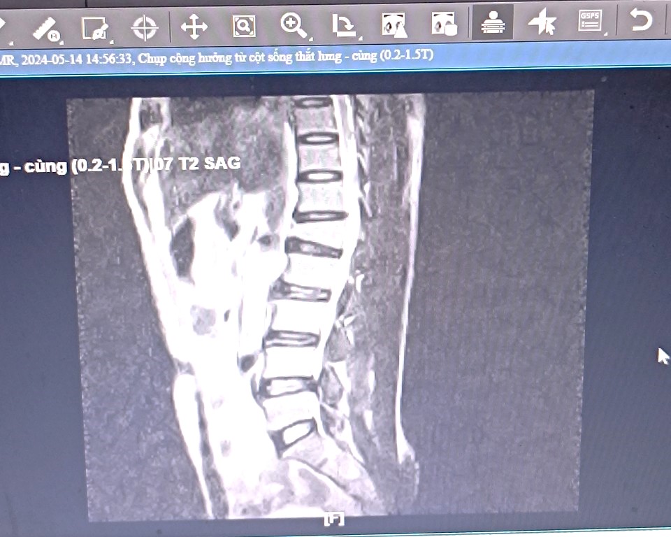 Dựa trên thăm khám lâm sàng cùng với kết quả chụp cộng hưởng từ cột sống thắt lưng, các bác sĩ chẩn đoán anh T. bị thoát vị đĩa đệm L4 L5, hẹp ngách bên L5 bên phải mức độ nặng.