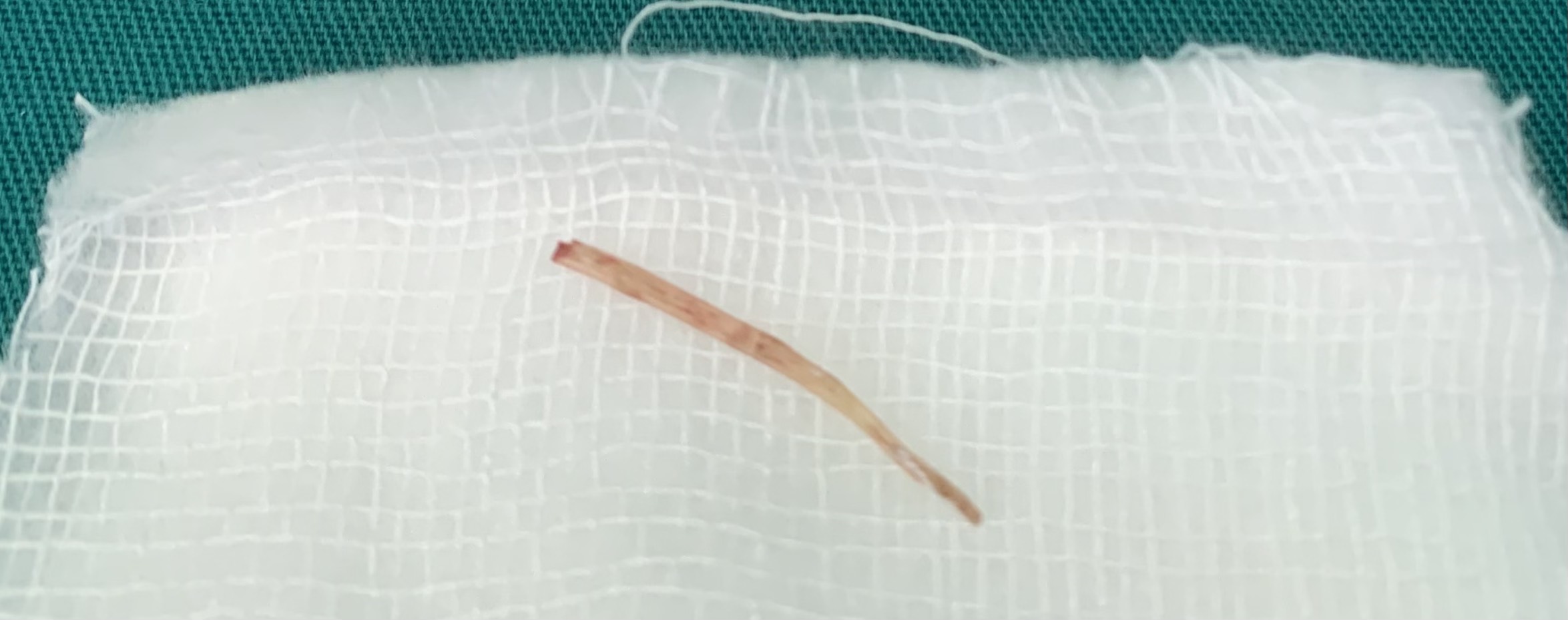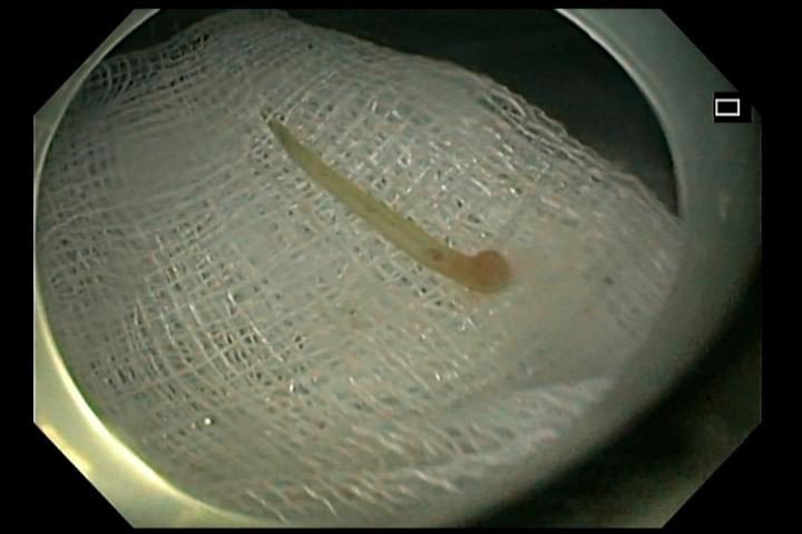 Hình ảnh dị vật xương cá được gắp ra khỏi thực quản của bệnh nhân