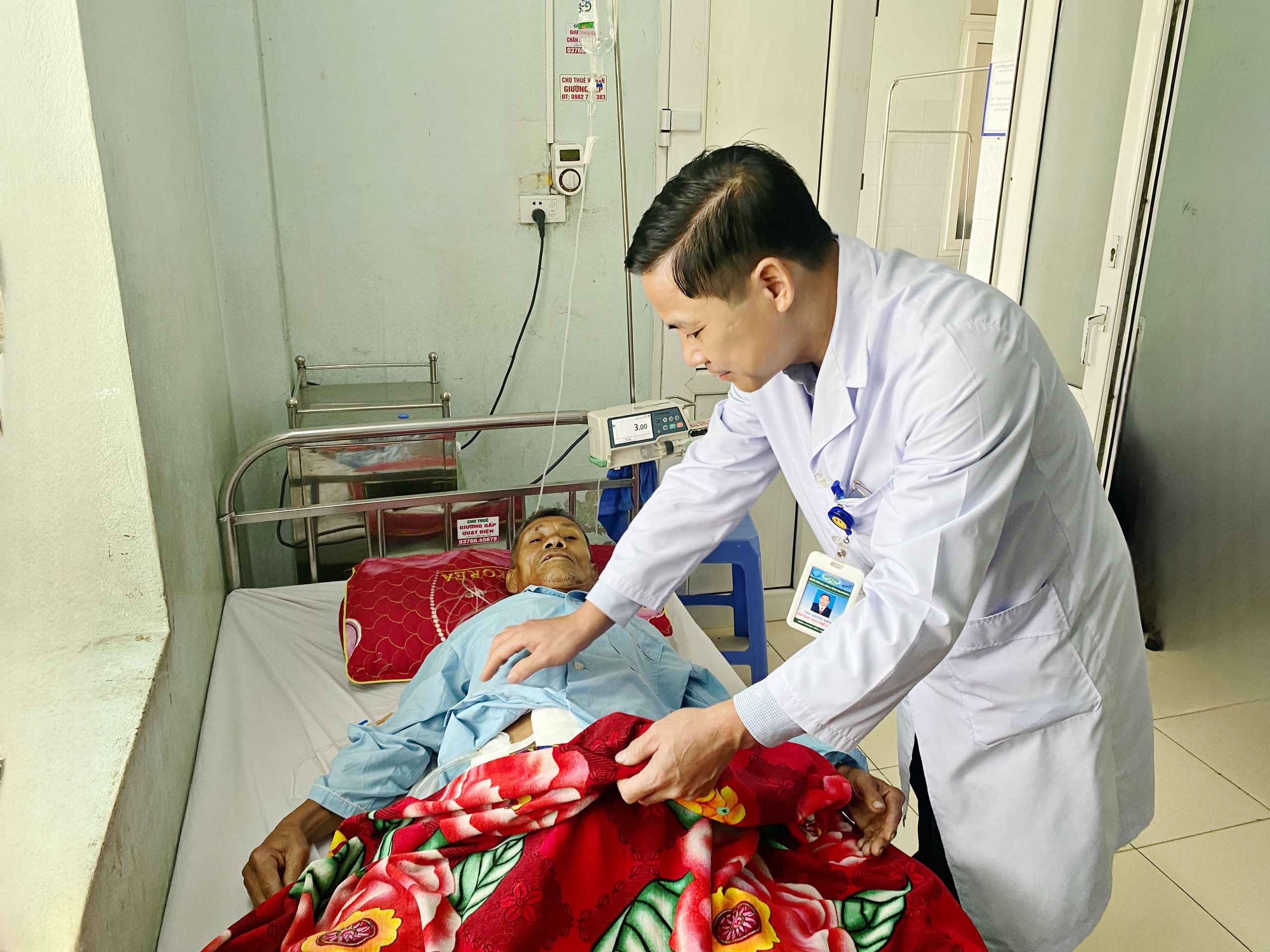 BSCKII. Mai Thế Long – Phó trưởng khoa Ngoại tổng hợp 2 thăm khám cho bệnh nhân sau 3 ngày phẫu thuật