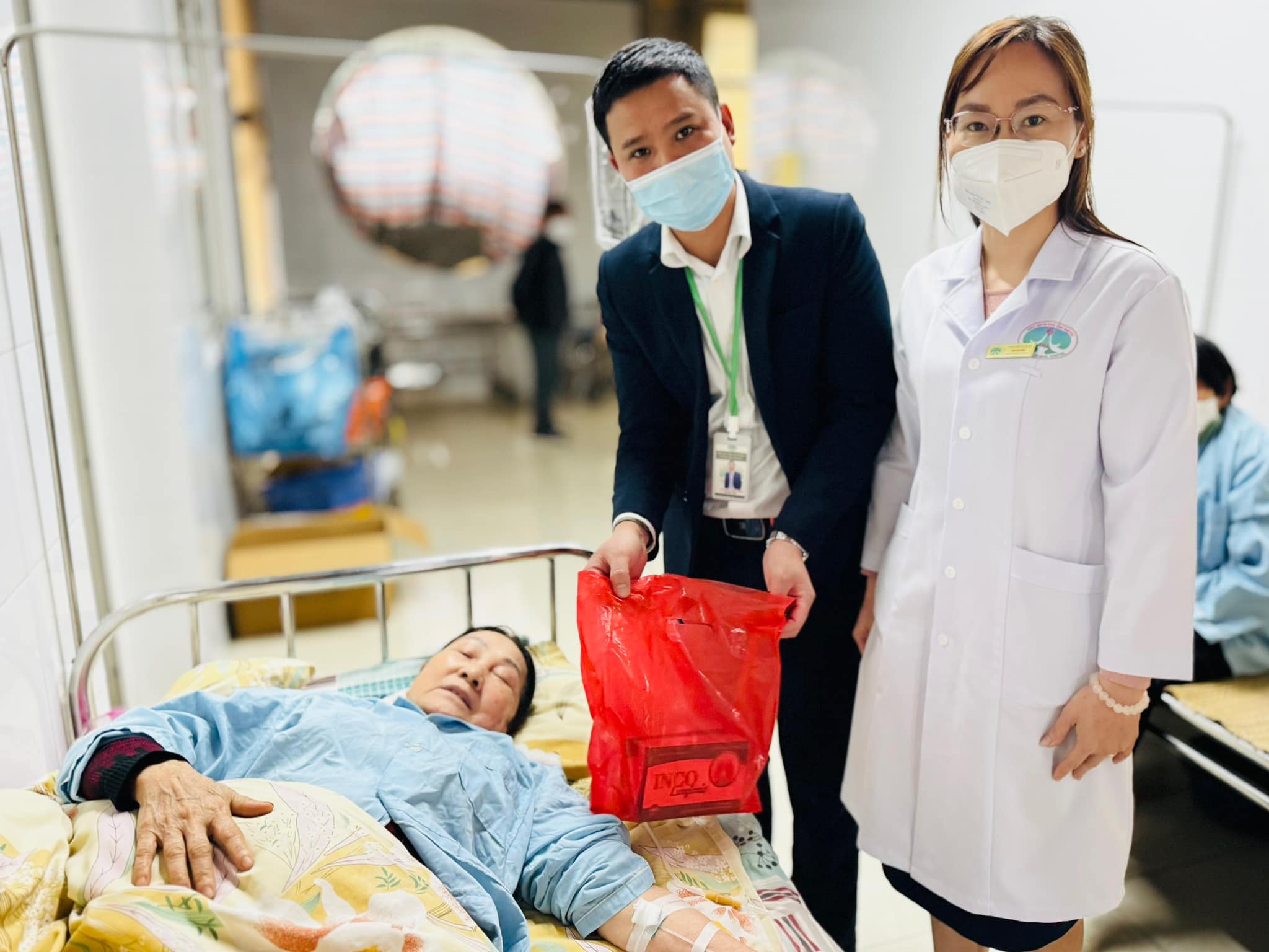 Cán bộ Phòng CTXH đến giường bệnh thăm hỏi, động viên và tặng quà cho nhiều bệnh nhân nữ