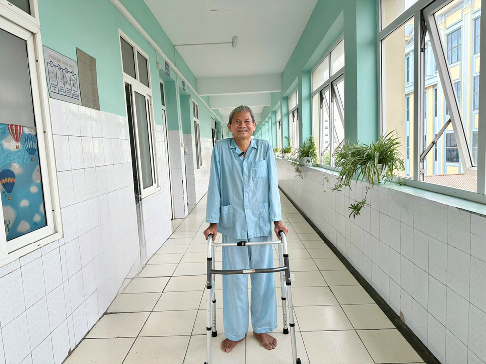 Bệnh nhân Phan Xuân C đi lại được sau khi phẫu thuật thay khớp háng nhân tạo