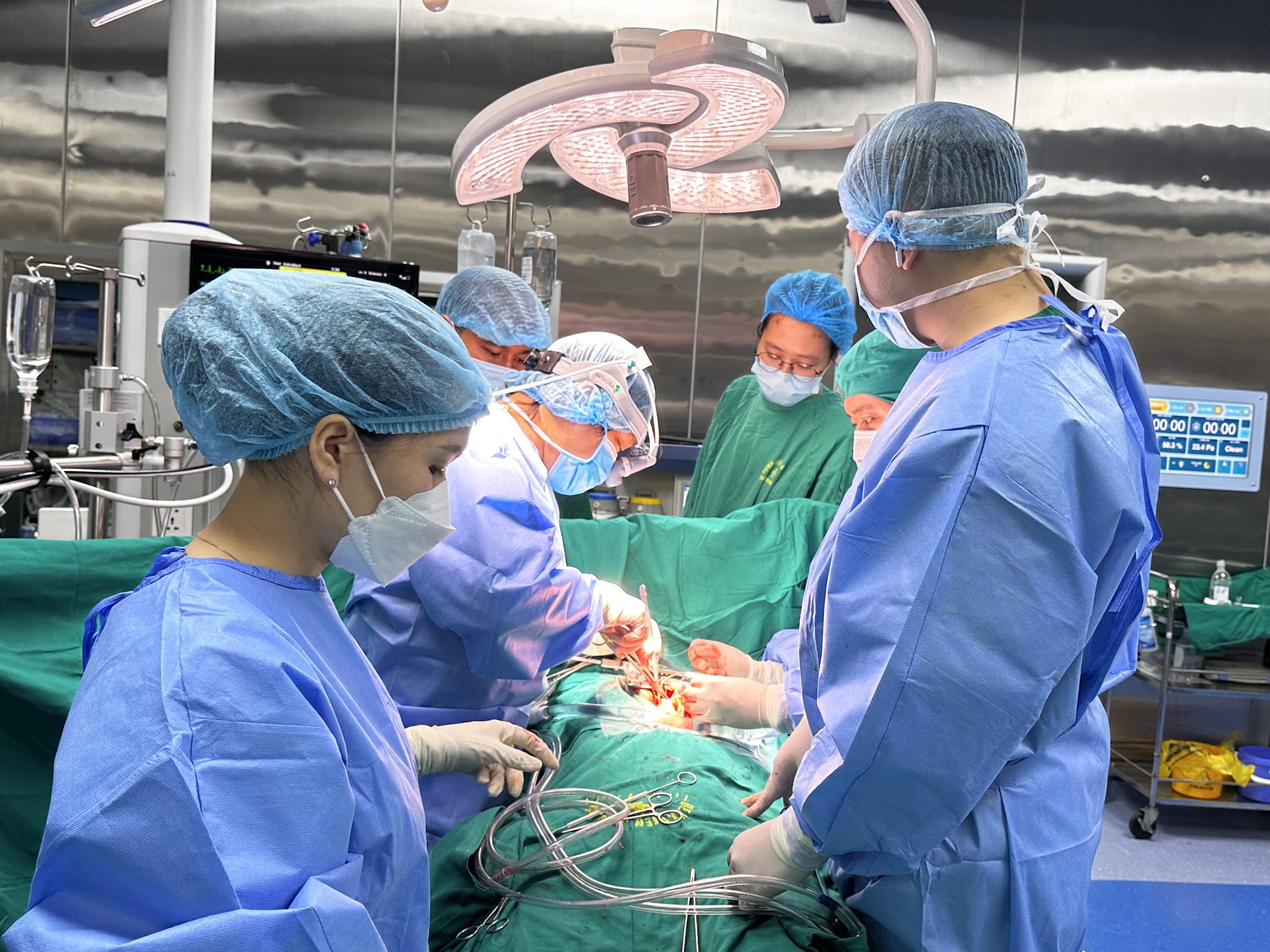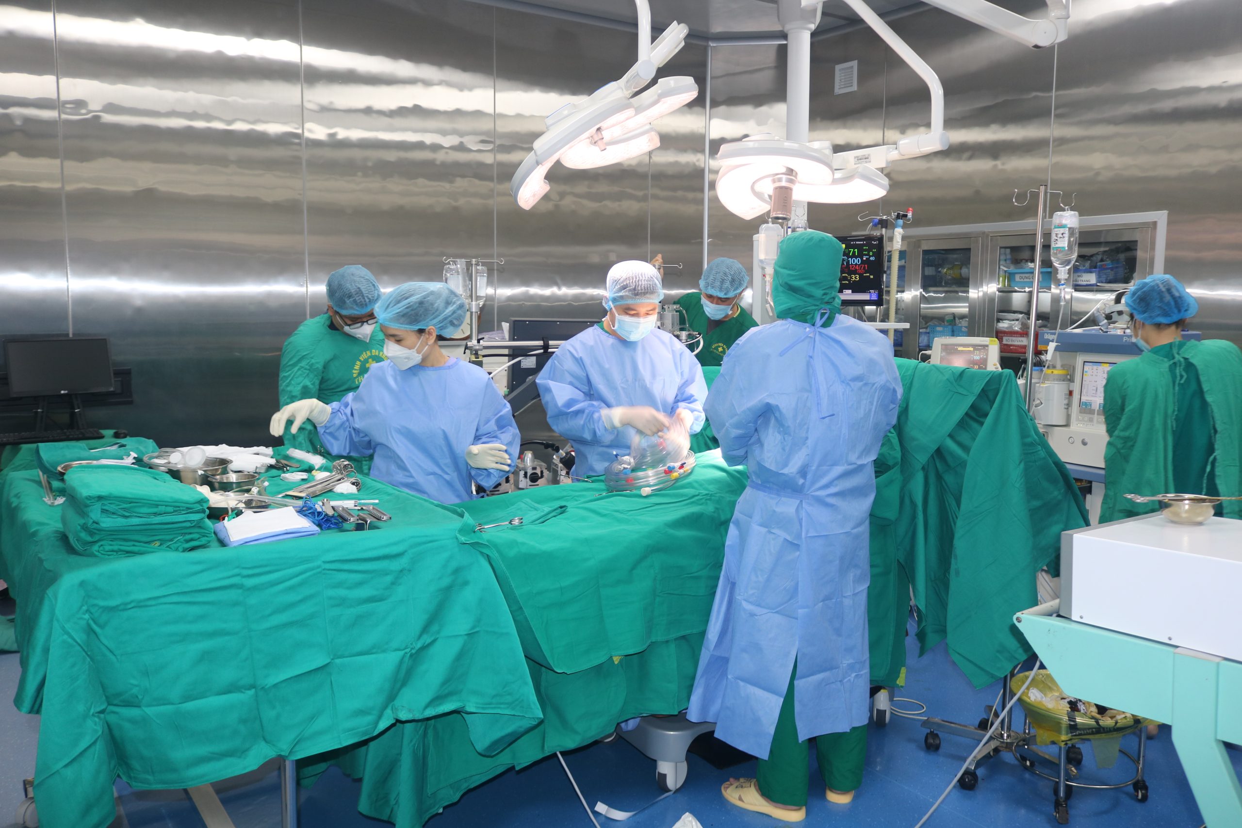Ê kíp các bác sĩ thực hiện kỹ thuật cho bệnh nhân Nguyễn Thị T.