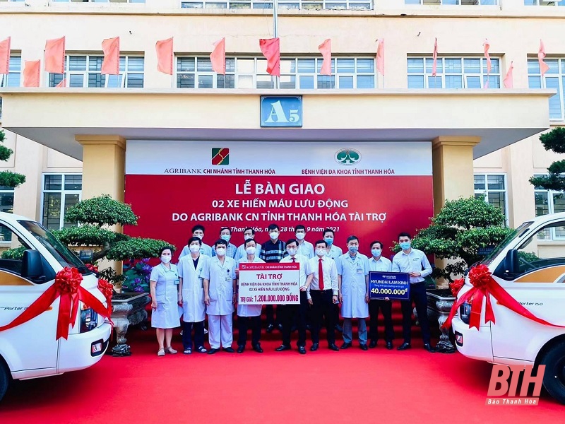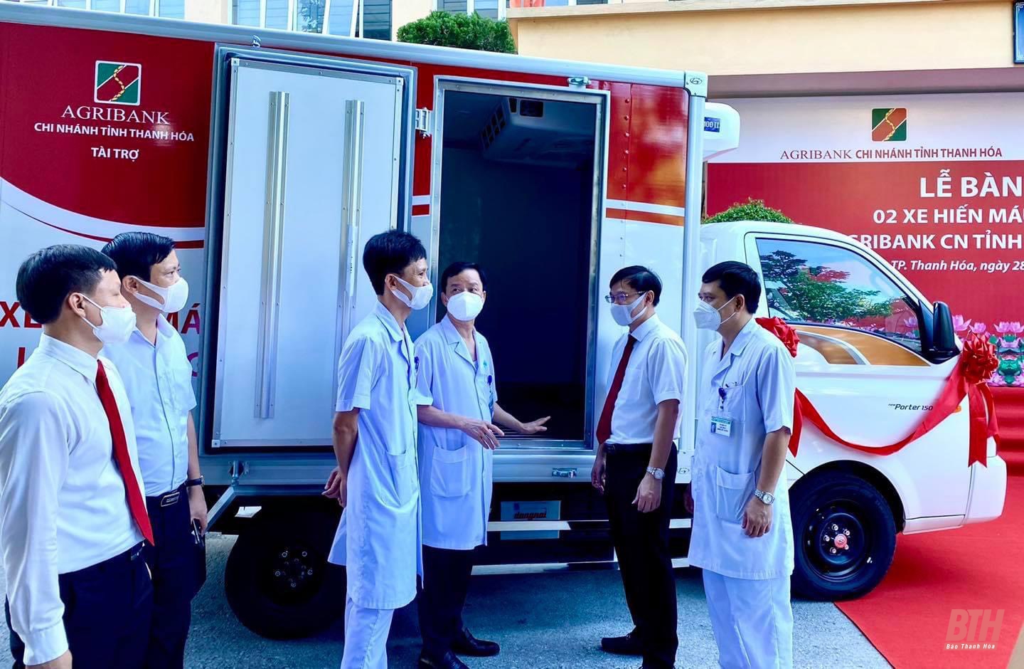 Nhằm góp phần chung tay cùng lực lượng y tế trong công tác phòng, chống dịch bệnh COVID-19, bổ sung thêm trang thiết bị điều trị bệnh nhân, Agribank Thanh Hóa đã trao tặng Bệnh viện Đa khoa tỉnh Thanh Hóa 2 xe hiến máu lưu động với tổng giá trị 1,2 tỷ đồng. Các xe được trang bị đầy đủ thiết bị y tế, bảo đảm công tác hiến máu, phục vụ việc chăm sóc sức khỏe cho bệnh nhân.