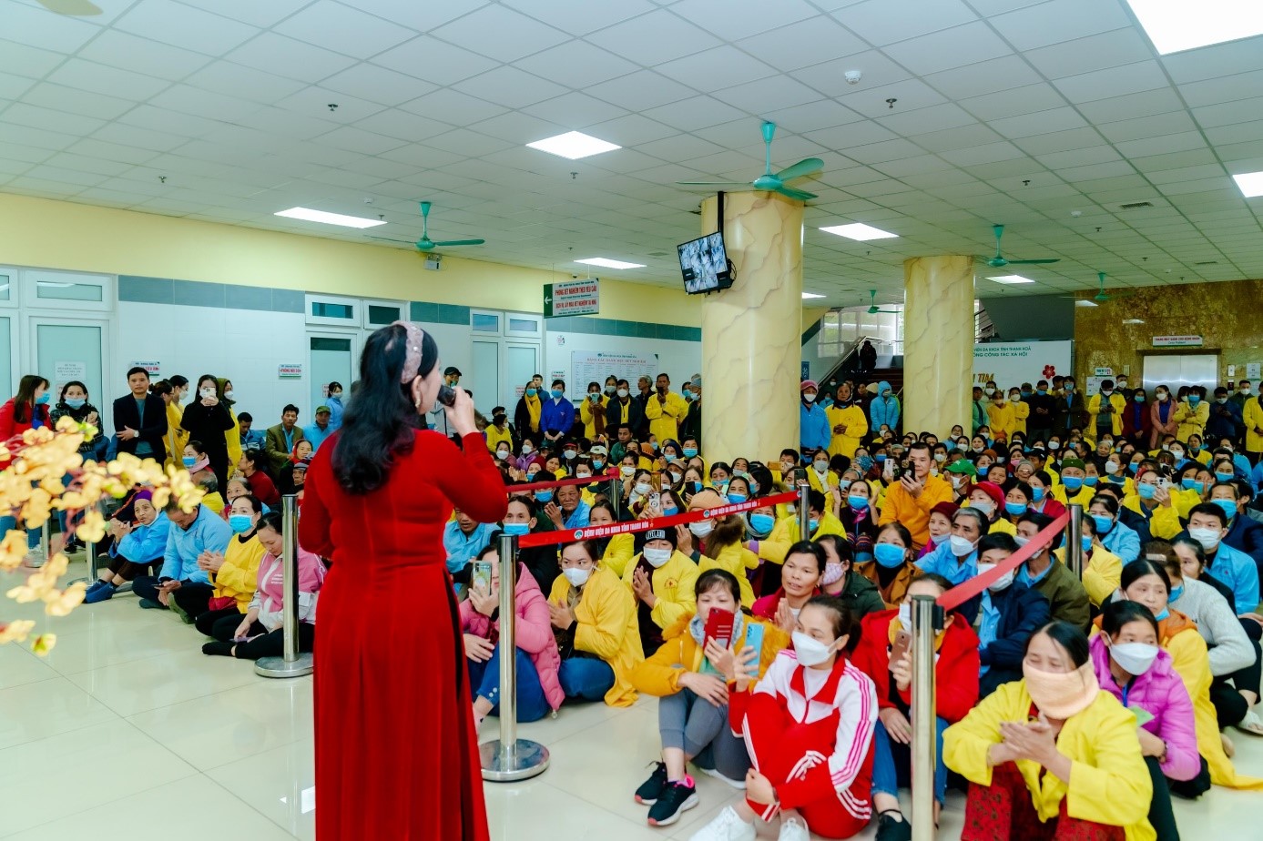 Bệnh nhân và người nhà bệnh nhân tham gia mua hàng, giao lưu văn nghệ, trò chơi tại chương trình