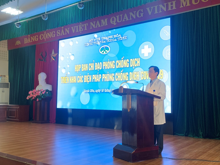 Trước tình hình dịch Covid-19 diễn biến phức tạp tại tỉnh Hải Dương, Quảng Ninh và các tỉnh, thành phố phía Bắc, chiều ngày 29/01/2021, BsCKII Lê Văn Sỹ – Trưởng Ban chỉ đạo phòng chống dịch Covid-19 – Giám đốc Bệnh viện Đa khoa tỉnh Thanh Hóa chủ trì cuộc họp khẩn về triển khai một số biện pháp cấp bách về phòng, chống dịch Covid-19 tại Bệnh viện. Tham dự cuộc họp có Ban Giám đốc Bệnh viện, các thành viên trong Ban chỉ đạo và Trưởng các Khoa, Phòng, Trung tâm trong toàn Bệnh viện.