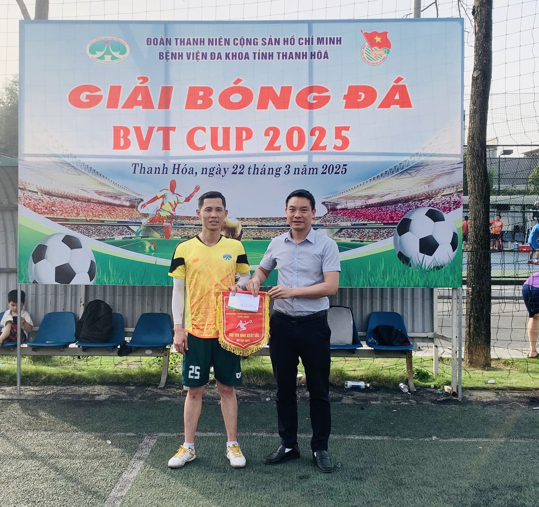 Chiều ngày 13/4/2025, Ban Chấp hành Đoàn TNCS Hồ Chí Minh Bệnh viện Đa khoa tỉnh Thanh Hóa đã tổ chức Lễ bế mạc Giải bóng đá nam BVT Cup năm 2025. Tham dự buổi Lễ có đồng chí Hoàng Hữu Trường – Phó Bí thư Đảng bộ, Phó Giám đốc Bệnh viện cùng các đồng chí đại diện Lãnh đạo các Khoa, Phòng, Trung tâm và đông đảo cổ động viên đến từ các Chi đoàn.