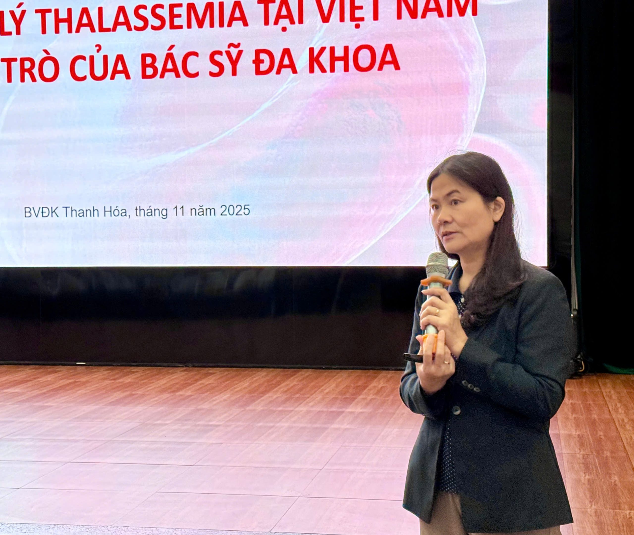 TS.BS Nguyễn Thị Thu Hà, Giám đốc Trung tâm Thalassemia, Viện Huyết học truyền máu Trung ương trình bày báo cáo