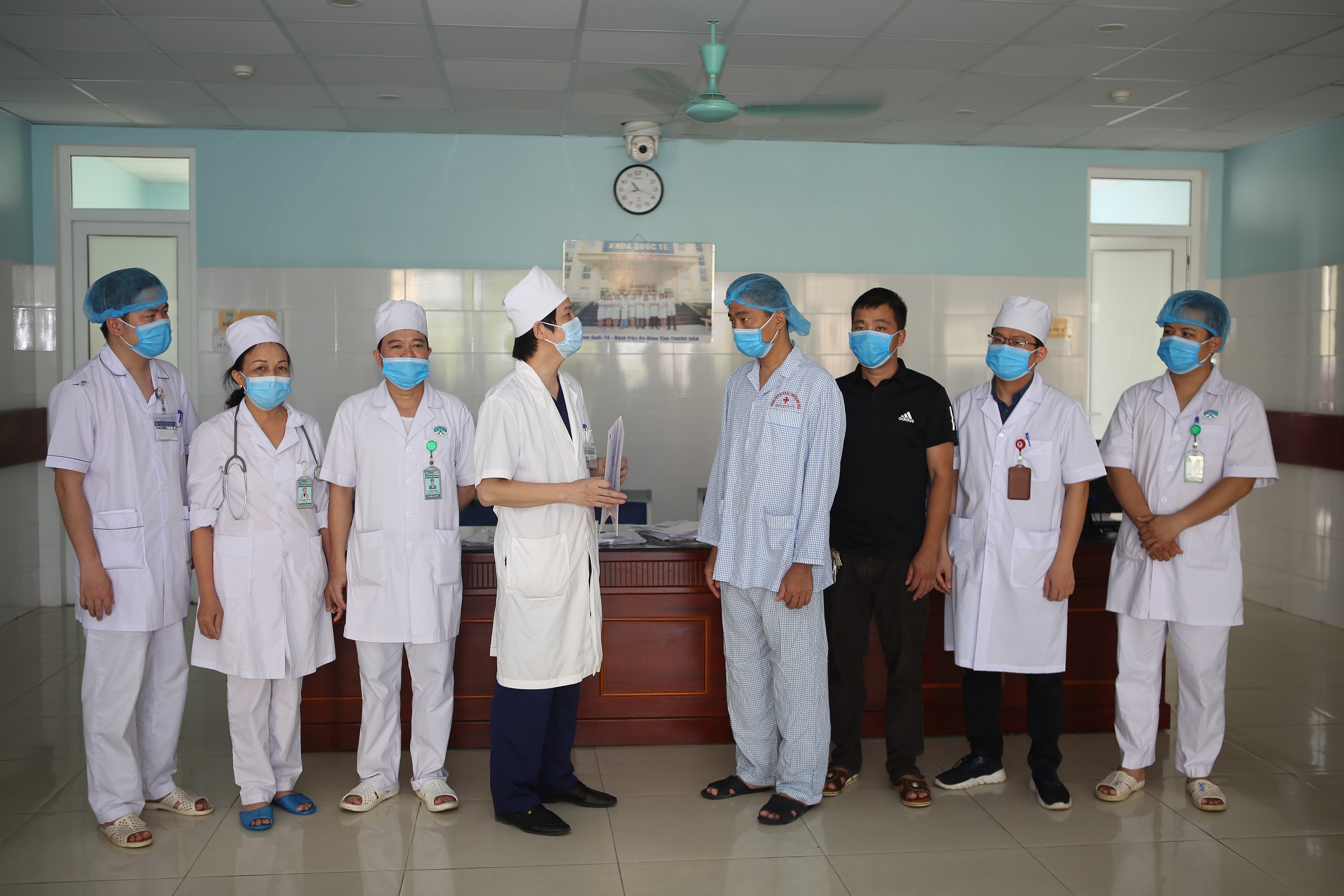Đại diện Bệnh viện trao giấy ra viện cho bệnh nhân