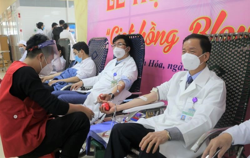 Sáng 07/02/2022, Bệnh viện Đa khoa tỉnh Thanh Hóa đã tổ chức Chương trình hiến máu tình nguyện “Giọt hồng Blouse trắng” năm 2022. Tham gia chương trình có các đồng chí trong Ban Giám đốc Bệnh viện, Lãnh đạo các Khoa, Phòng, Trung tâm và hàng trăm cán bộ, viên chức Bệnh viện.
