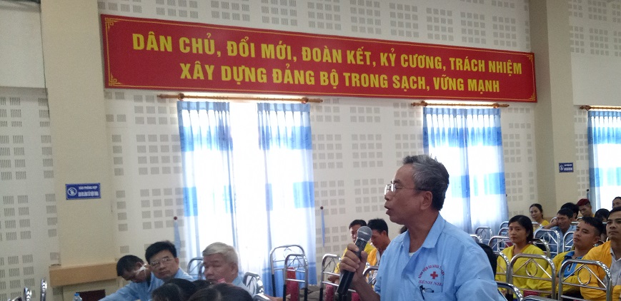 Thay mặt lãnh đạo Bệnh viện, BSCKII Hoàng Hữu Trường – Phó Giám Đốc Bệnh viện tiếp thu những ý kiến đóng góp hết sức thiết thực và giải đáp những thắc mắc từ phía Hội đồng người bệnh về những mặt còn tồn tại của Bệnh viện.