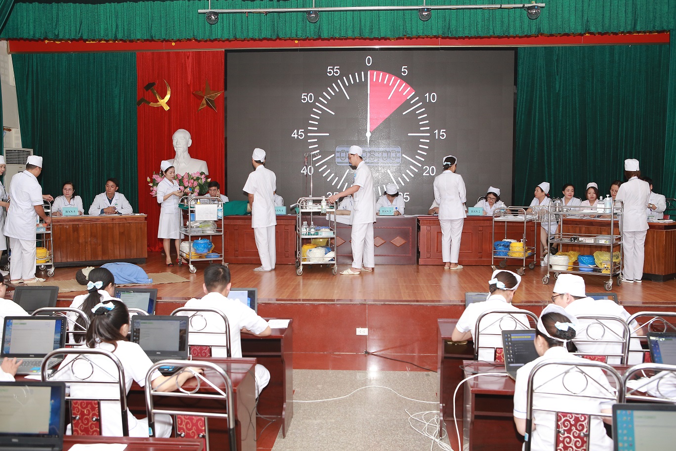 Kỳ kiểm tra đánh giá chất lượng năm nay có sự tham gia của 130 Điều dưỡng, Kỹ thuật viên đến từ các Khoa, Trung tâm trong Bệnh viện. Các thí sinh tham dự phải trải qua các phần thi, bao gồm: Phần thi kiến thức chuyên môn và pháp luật qua bài trắc nghiệm gồm 100 câu hỏi trắc nghiệm; Phần thi kỹ năng ứng dụng công nghệ thông tin trên máy tính, bao gồm thực hành soạn thảo văn bản, sử dụng phần mềm quản lý Bệnh viện trong thanh toán chi phí khám chữa bệnh; Phần thi thực hành bằng phương pháp chạy trạm, gồm 05 trạm: phân loại và xử lý rác thải, kỹ năng tiêm truyền tĩnh mạch, kỹ năng cấp cứu ngừng tuần hoàn, kỹ năng thay băng vết mổ…. Nội dung các phần thi đều tập trung vào những kiến thức, kỹ thuật cơ bản đang được thực hiện hàng ngày trong các công việc của Điều dưỡng, Kỹ thuật viên.