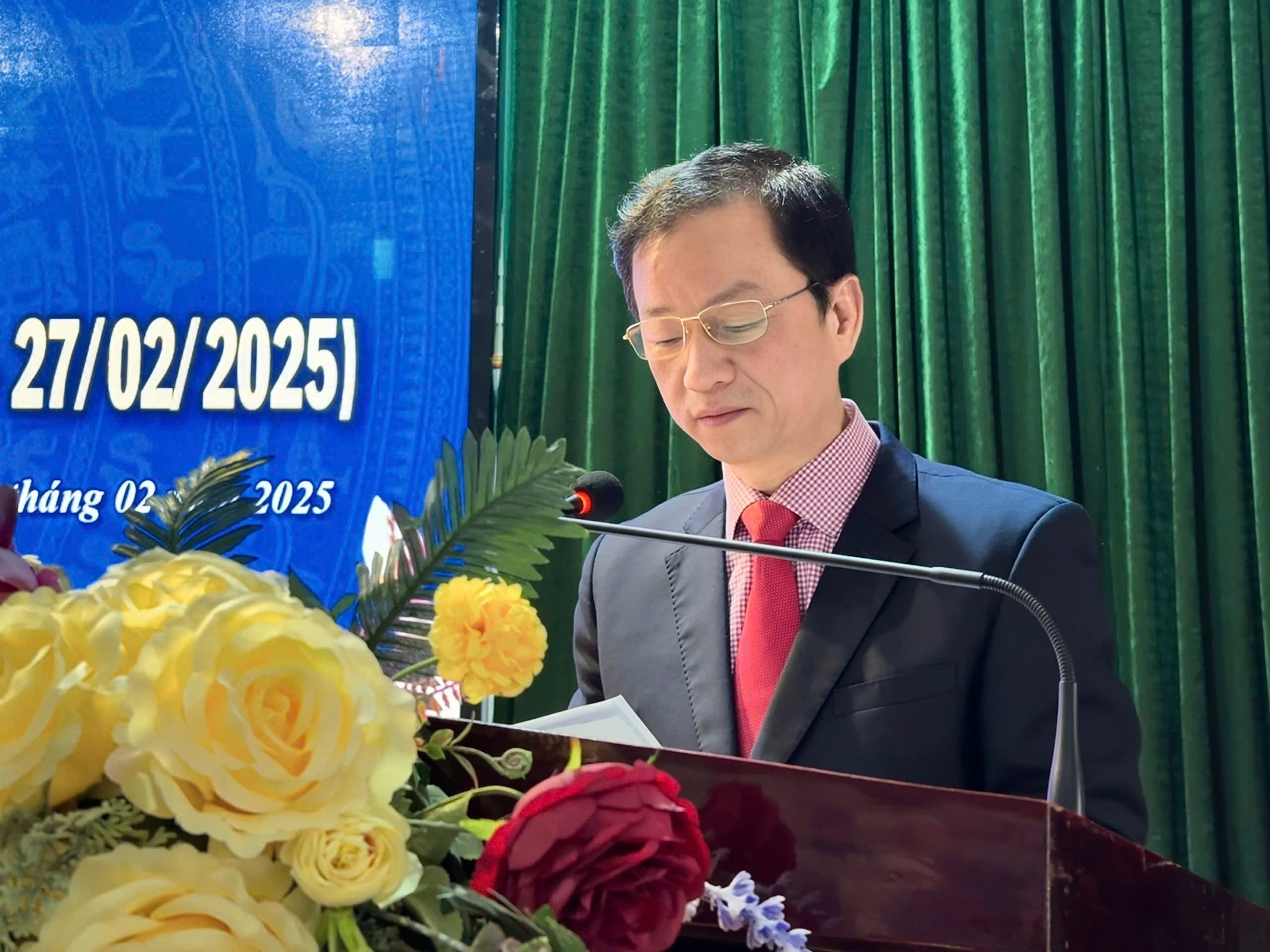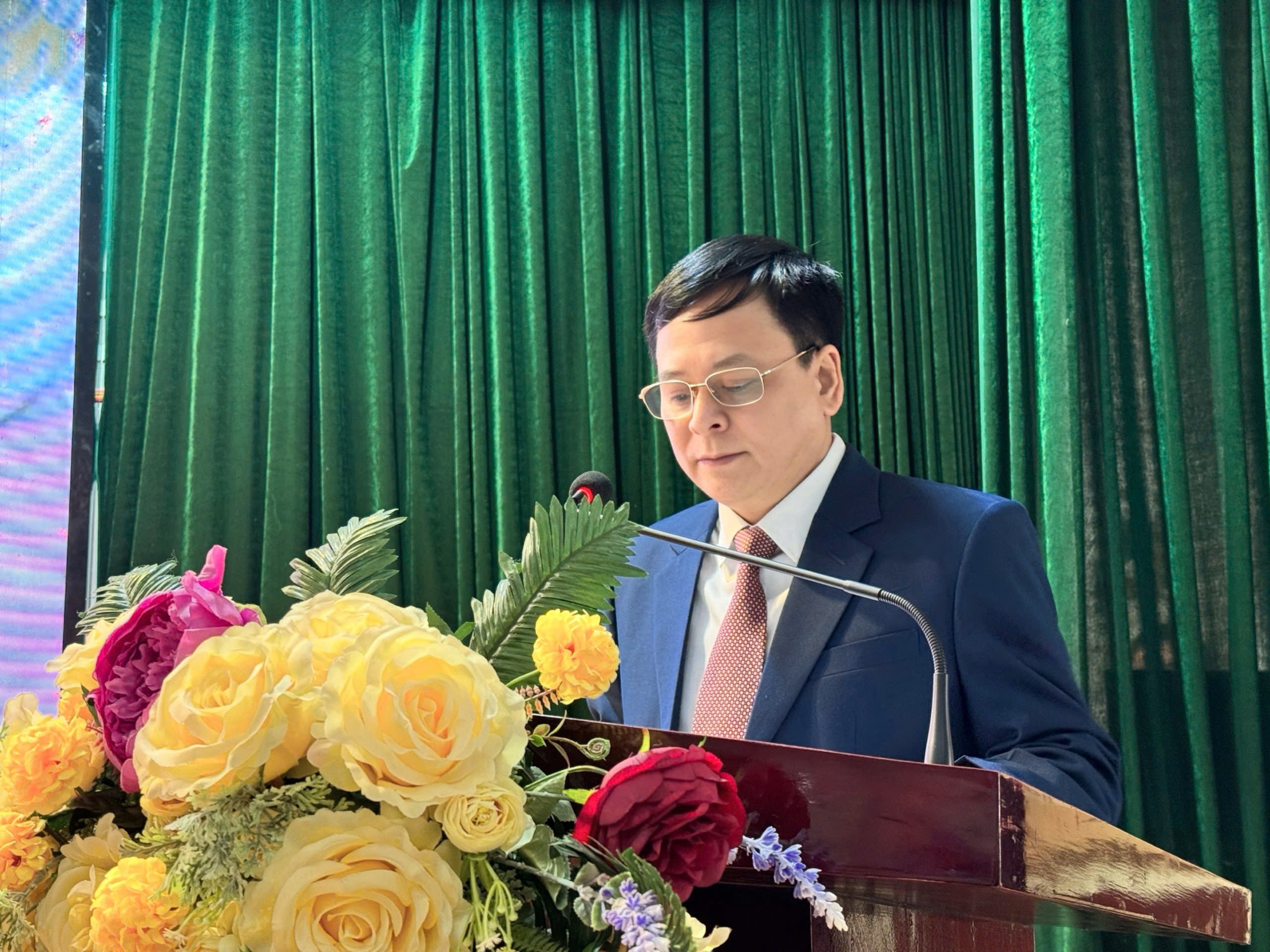 TTND.BSCKII Lê Văn Sỹ – Bí thư Đảng bộ, Giám đốc Bệnh viện đọc diễn văn tại Lễ kỷ niệm