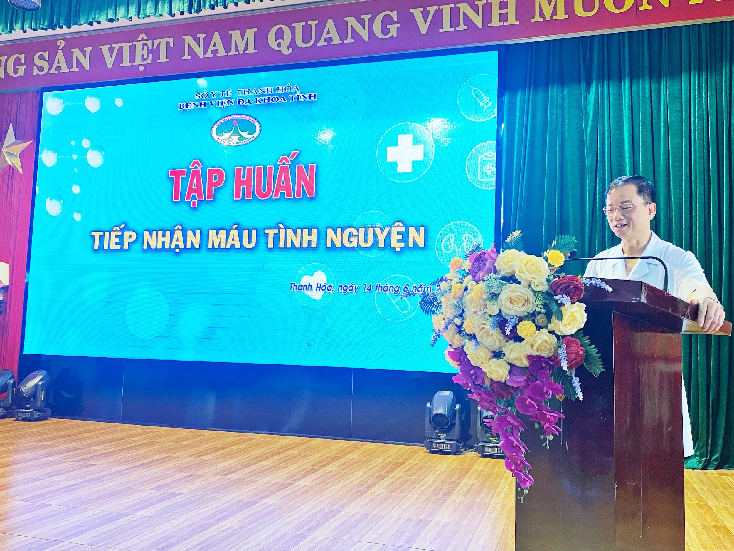 Cũng trong khuôn khổ chương trình, BSCKII Lê Văn Sỹ – Giám đốc Bệnh viện đã biểu dương tinh thần tự giác, xung kích của cán bộ viên chức và đoàn viên thanh niên tham gia đội hiến máu tình nguyện. Đồng chí cũng nhấn mạnh, hiến máu tình nguyện là một hoạt động quan trọng trong việc phát triển và duy trì nguồn người hiến máu để cung cấp máu cho điều trị bệnh nhân. Đây không đơn thuần là một hoạt động nhân đạo mà thực sự đã trở thành một ngành khoa học, điều này đòi hỏi mỗi cán bộ, viên chức, tham gia tuyên truyền, vận động hiến máu tình nguyện không chỉ cần lòng nhiệt tình, tâm huyết, tinh thần trách nhiệm cao mà còn phải được trang bị những kiến thức về hiến máu, kỹ năng lấy máu, an toàn truyền máu, những kỹ năng vận động quần chúng, kỹ năng công tác xã hội… Đồng chí mong muốn rằng, cán bộ viên chức tại Bệnh viện Đa khoa tỉnh Thanh Hoá sẽ nâng cao hơn nữa tinh thần, trách nhiệm để hoàn thành tốt nhiệm vụ của đội hỗ trợ hiến máu tình nguyện, đồng thời tiếp nhận thêm được thật nhiều chế phẩm máu an toàn về ngân hàng máu tại Bệnh viện kịp thời phục vụ cấp cứu và điều trị bệnh nhân.
