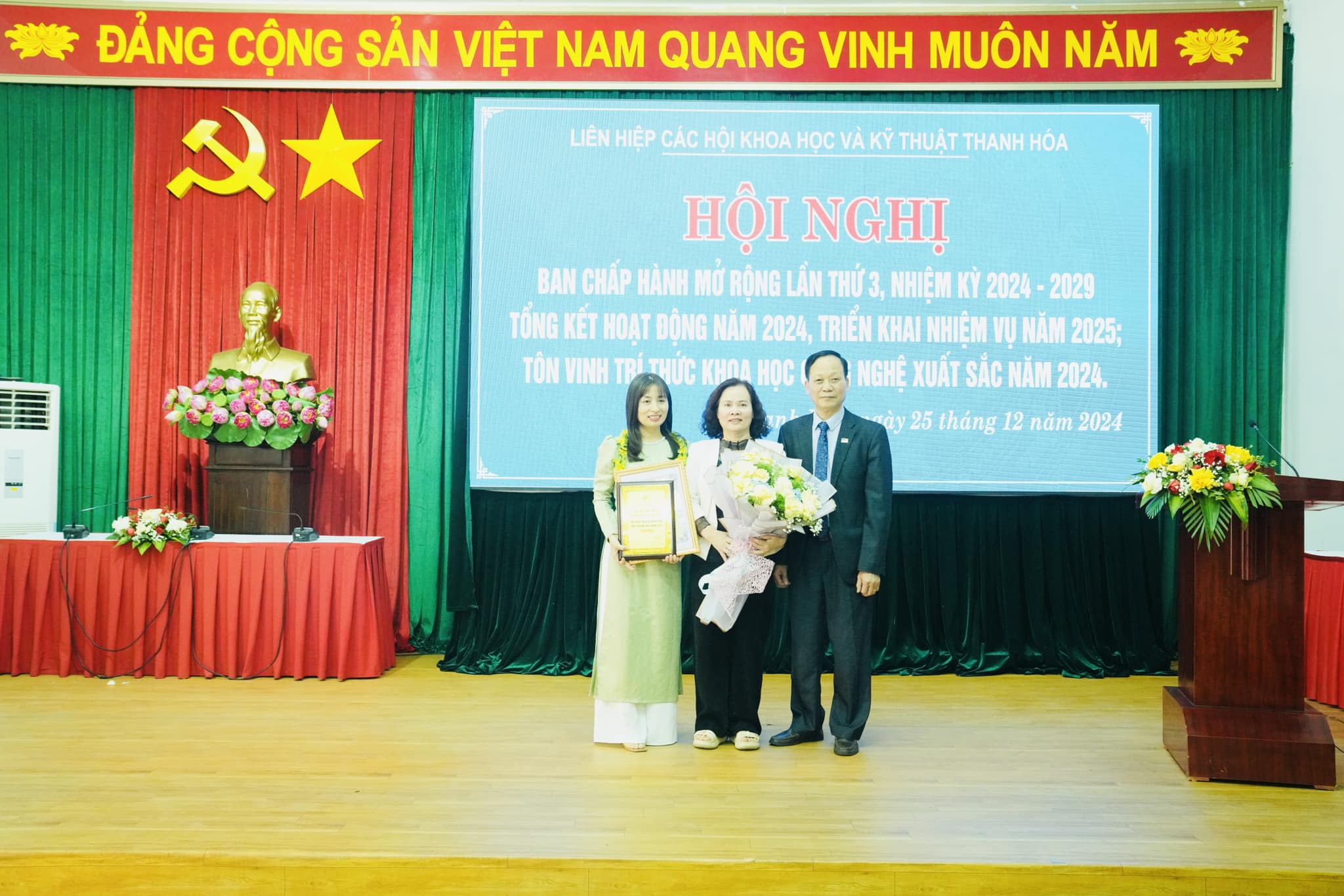 Chiều 25/12, Liên hiệp các Hội Khoa học và Kỹ thuật Thanh Hóa (gọi tắt là Liên hiệp hội) đã tổ chức Hội nghị Ban Chấp hành mở rộng lần thứ 3, nhiệm kỳ 2024-2029, tổng kết hoạt động năm 2024, triển khai nhiệm vụ năm 2025; tôn vinh trí thức khoa học công nghệ xuất sắc năm 2024. Bệnh viện Đa khoa tỉnh Thanh Hóa vinh dự có 01 cá nhân được tôn vinh trí thức khoa học và công nghệ xuất sắc dịp này.