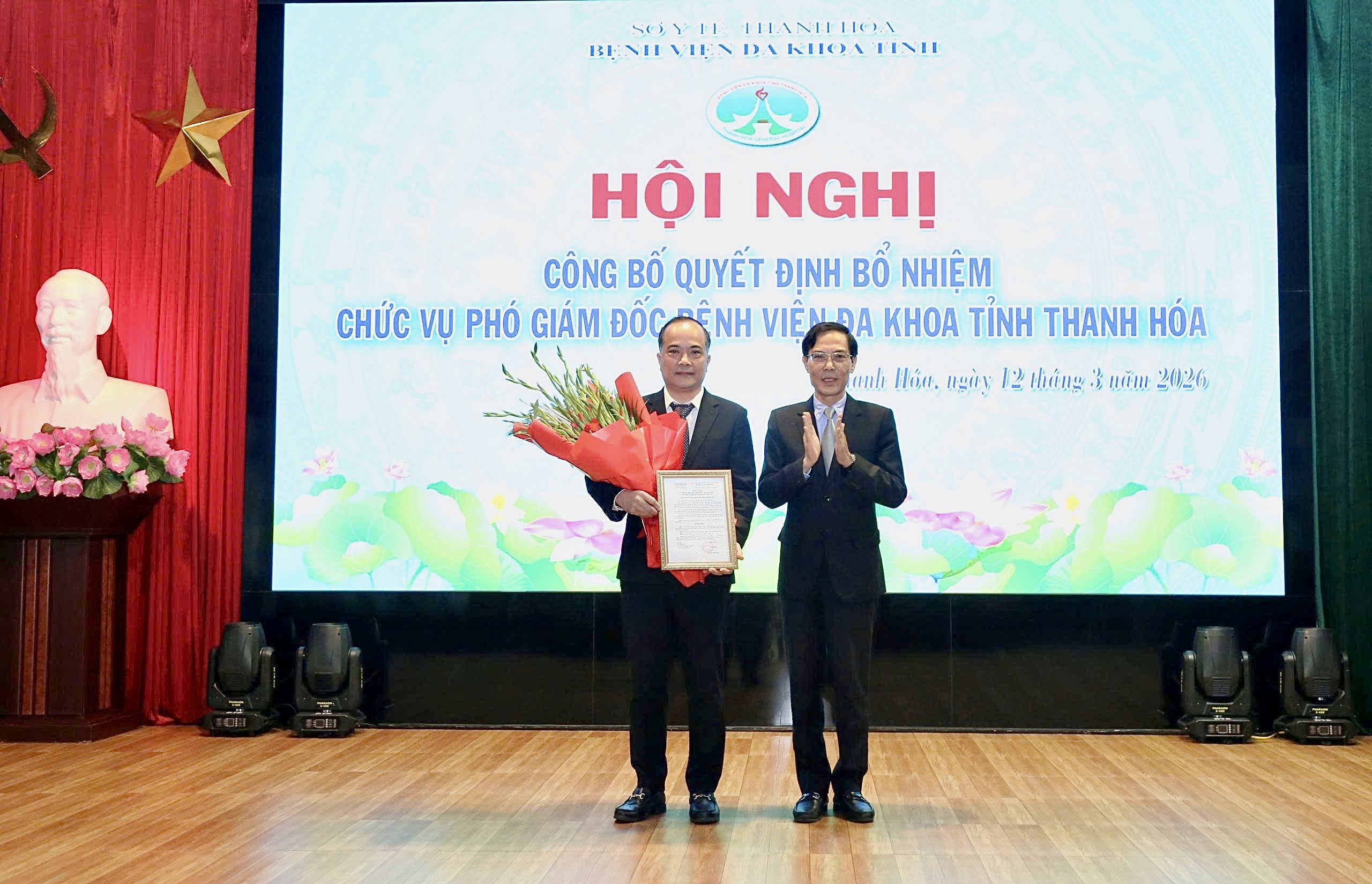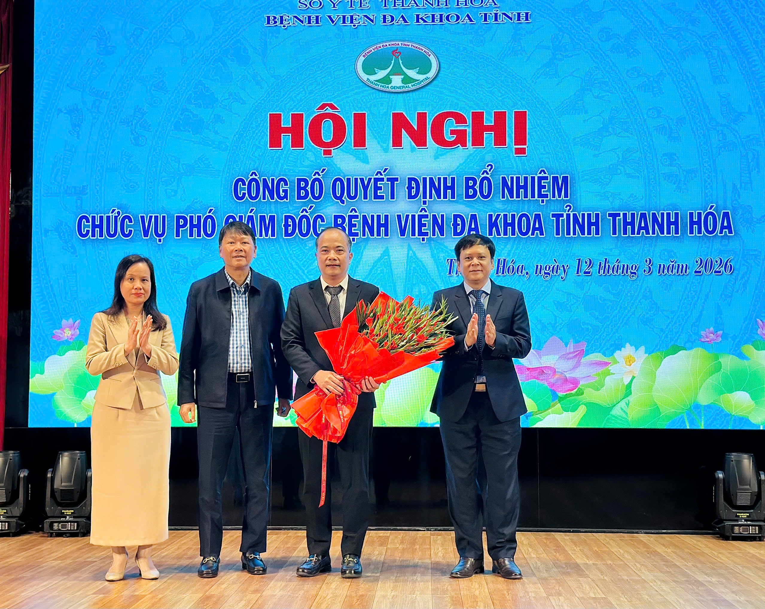 Tại hội nghị, đại diện lãnh đạo Sở Y tế đã công bố Quyết định số 699/QĐ-UBND, ngày 10/3/2026 của Chủ tịch UBND tỉnh bổ nhiệm đồng chí Trương Thanh Tùng, Trưởng phòng Kế hoạch tổng hợp, Bệnh viện Đa khoa tỉnh Thanh Hóa giữ chức vụ Phó Giám đốc Bệnh viện Đa khoa tỉnh Thanh Hóa. Thời hạn bổ nhiệm là 5 năm, kể từ ngày quyết định có hiệu lực.