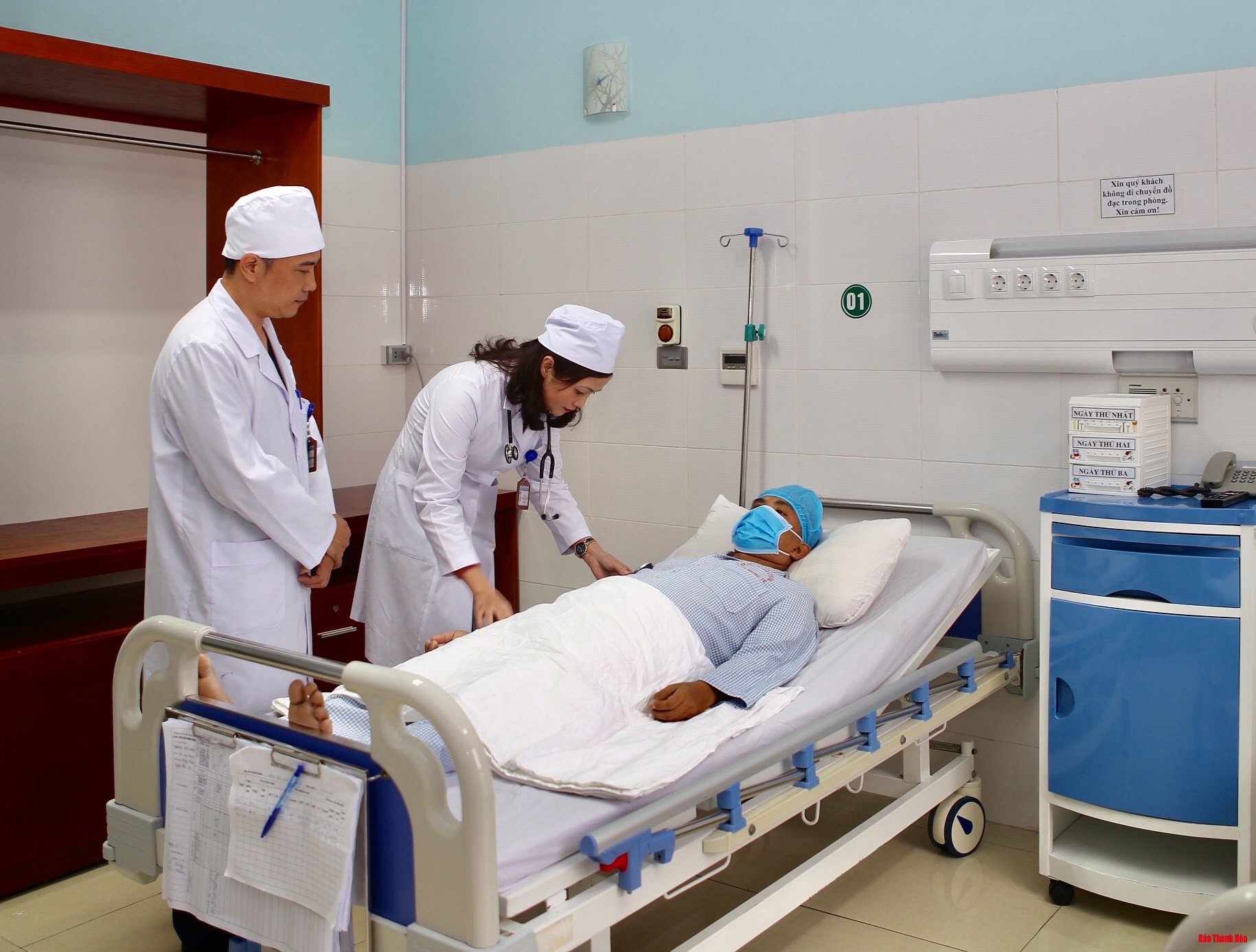 Lãnh đạo bệnh viện chúc mừng bệnh nhân ổn định sức khỏe sau ghép thận.