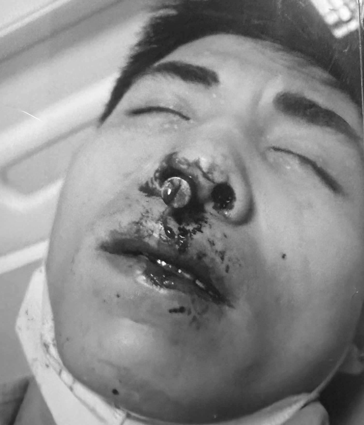 Theo người nhà kể lại, trong lúc đang vận hành máy khoan đá, anh T. bất ngờ bị mũi khoan bật ra, găm thẳng vào mũi với lực rất mạnh. Tai nạn khiến bệnh nhân rơi vào trạng thái hoảng loạn, máu chảy nhiều. Trong cơn hoảng loạn và đau đớn, anh T. đã thử rút dị vật ra nhưng không thành và khiến máu chảy ồ ạt và dữ dội hơn.