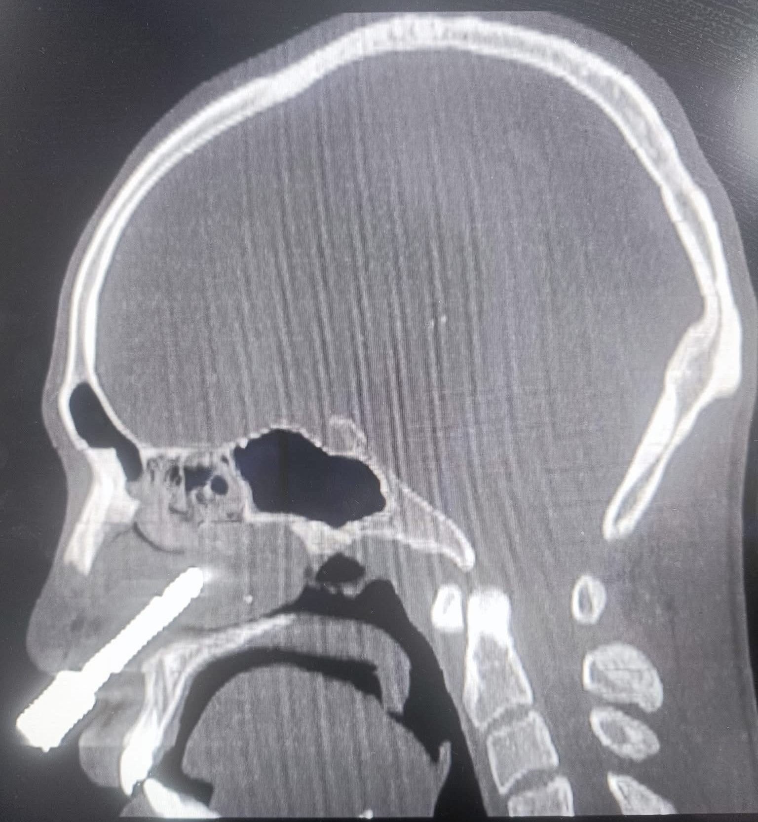 Hình ảnh dị vật cắm sâu vào hốc mũi bệnh nhân trên phim chụp CLVT