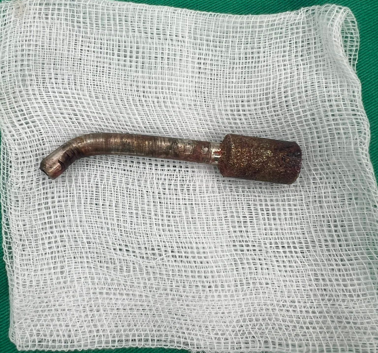 Hình ảnh dị vật mũi khoan được lấy ra khỏi hốc mũi bệnh nhân