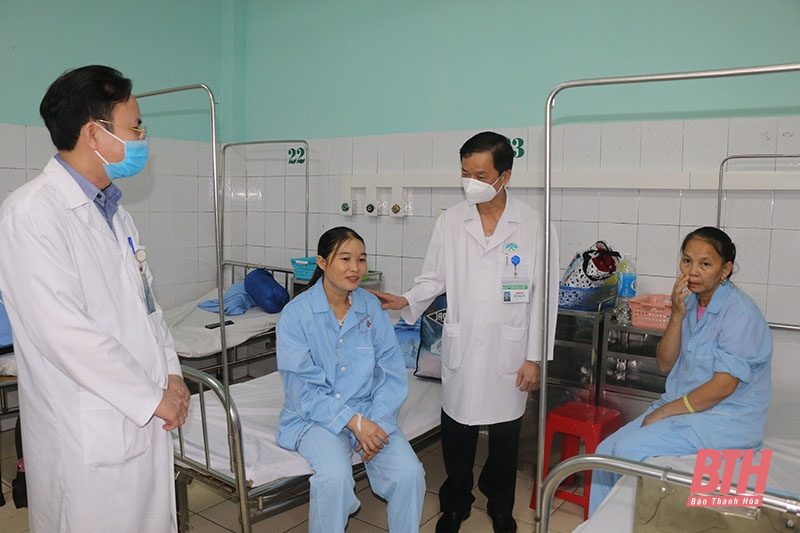 Giám đốc Bệnh viện Đa khoa tỉnh Thanh Hóa Lê Văn Sỹ động viên bệnh nhân khi ra viện.