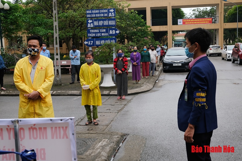 Mặc dù số lượng bệnh nhân, người nhà bệnh nhân đến mua đồ ăn ở căng tin đông, nhưng mọi người đều tuân thủ những quy định phòng, chống dịch COVID-19 mà Bệnh viện đa khoa tỉnh Thanh Hóa đặt ra.
