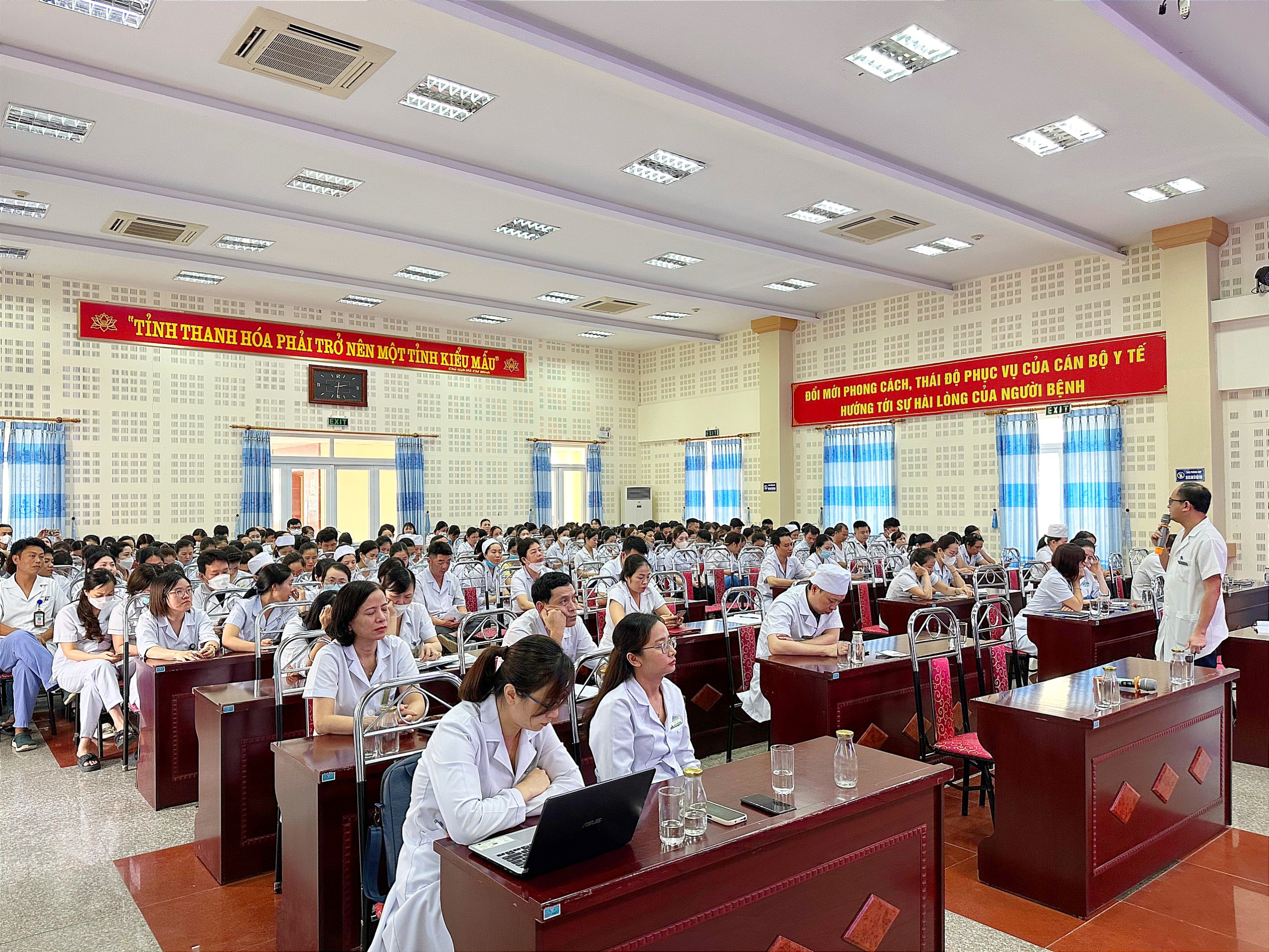 Nhằm nâng cao chất lượng và chuẩn hóa các quy trình quản lý chất lượng xét nghiệm theo phiên bản mới ISO 15189:2022, chiều 06-9, Bệnh viện Đa khoa tỉnh Thanh Hóa đã tổ chức Chương trình “Đào tạo áp dụng sổ tay, hệ thống các quy trình quản lý chất lượng theo tiêu chuẩn ISO 15189:2022 và áp dụng 5S” cho toàn bộ Điều dưỡng, Kỹ thuật viên trong Bệnh viện.