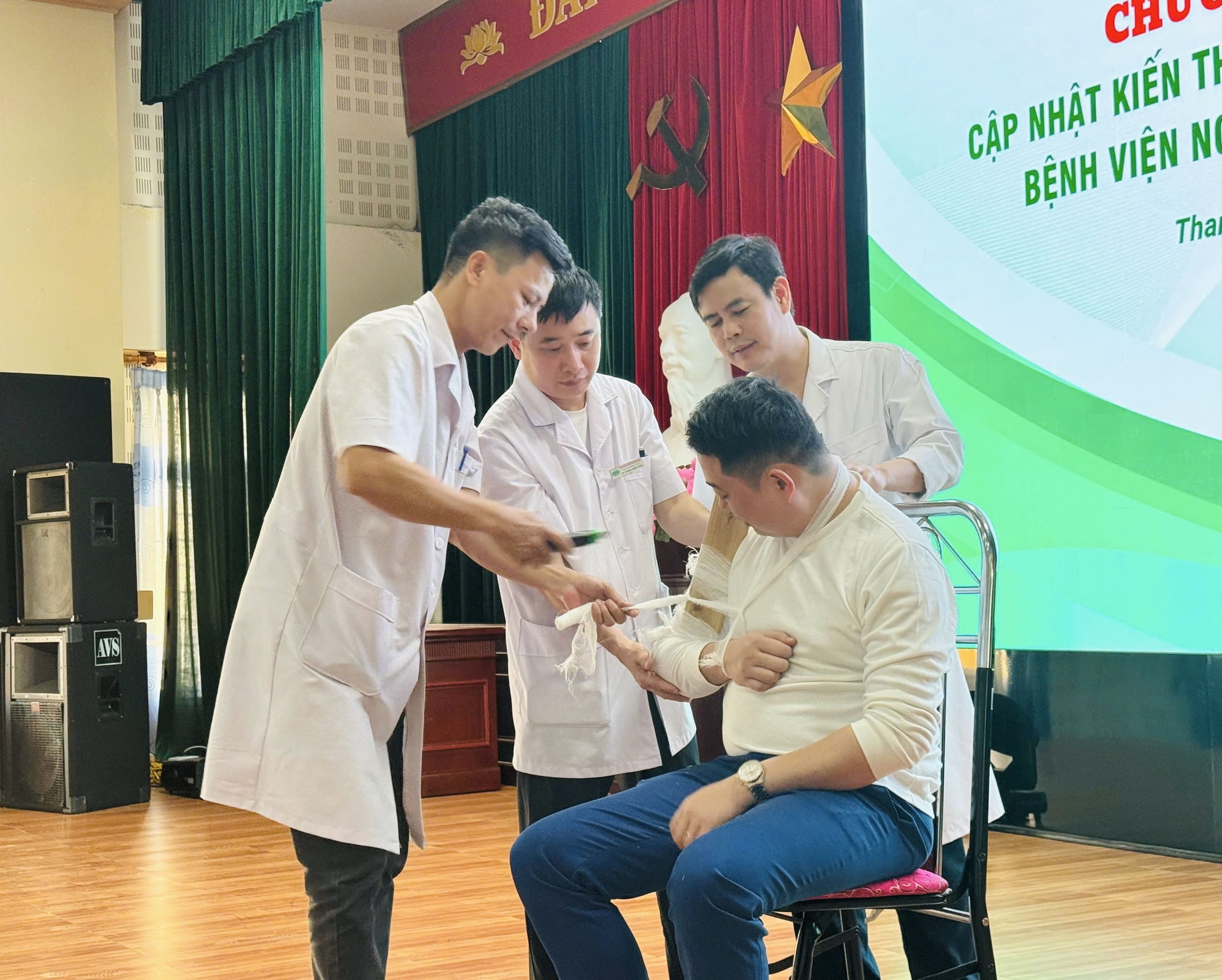 Bác sĩ hướng dẫn thực hành cố định gãy xương – cột sống