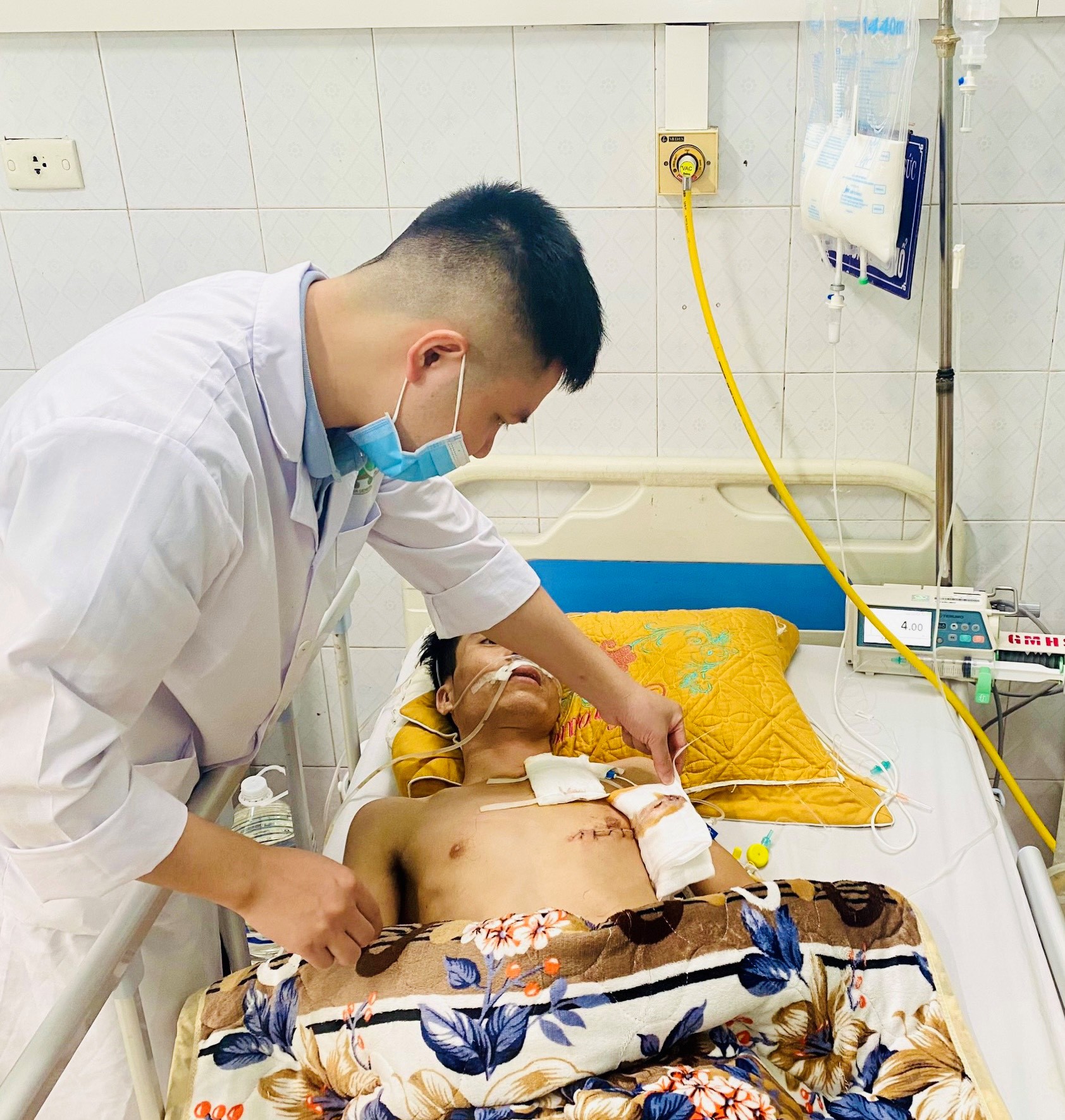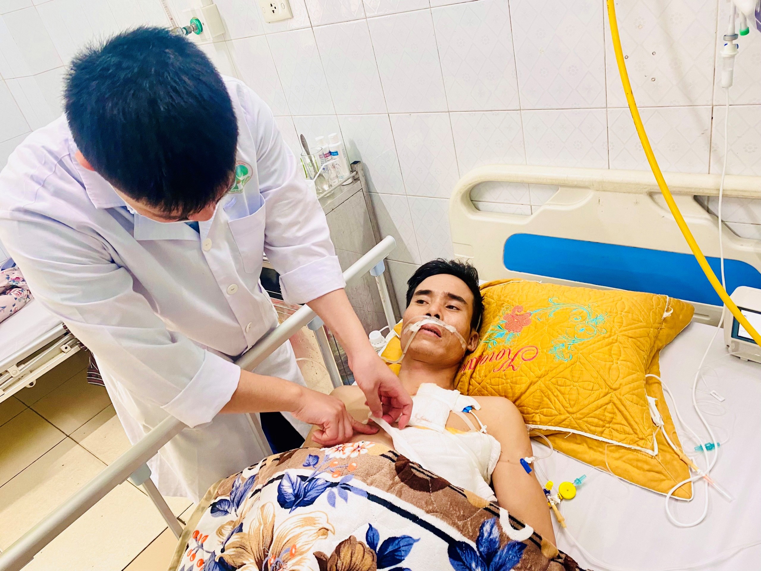 Nhận định đây là trường hợp có tổn thương bên trong khá phức tạp do dị vật văng vào ngực với vận tốc nhanh và mạnh, nguy cơ tử vong nếu không được phẫu thuật cấp cứu khẩn cấp để cầm máu cho bệnh nhân, các Bác sĩ tại Trung tâm Cấp cứu, Bệnh viện Đa khoa tỉnh đã lập tức khởi động Hệ thống báo động đỏ, xử lý cấp cứu hồi sức và chuyển khẩn cấp bệnh nhân về phòng mổ.