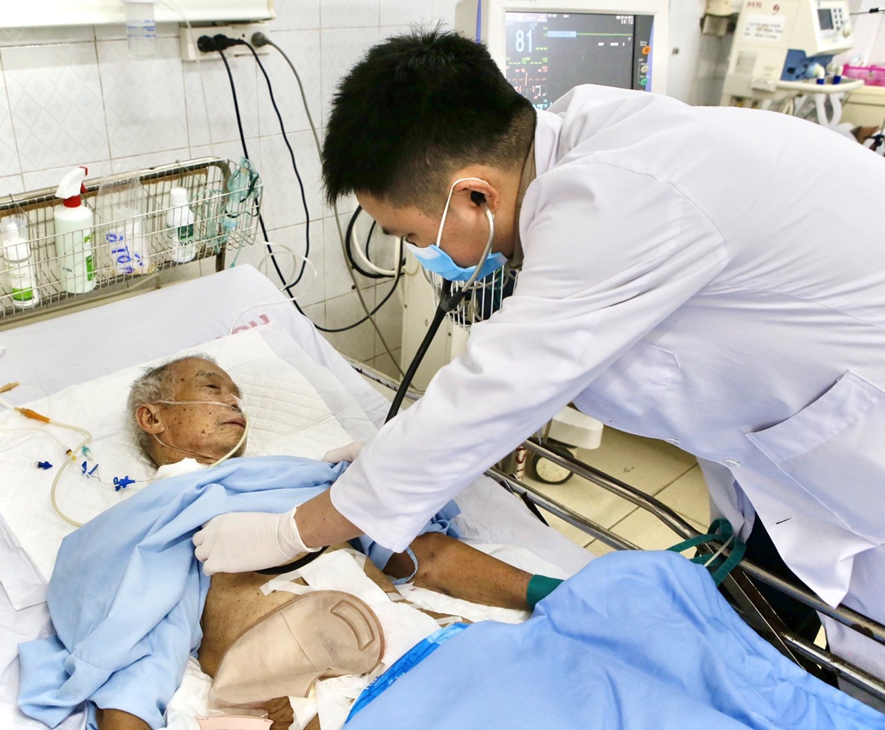 Thạc sĩ, Bác sĩ Đỗ Minh Thái – Phó trưởng khoa HSTC1- Chống độc cho biết, đây là ca bệnh rất nặng, vào viện trong tình trạng nguy kịch, bệnh nhân mắc nhiều bệnh lý nền phức tạp, đòi hỏi đội ngũ thầy thuốc có kinh nghiệm, trình độ cao và phối hợp của nhiều chuyên khoa. Việc phẫu thuật cắt bỏ đoạn ruột hoại tử chỉ giải quyết được biến chứng của tắc mạch mạc treo. Hơn nữa, bệnh nhân tuổi cao, già yếu, có bệnh nền bệnh phức tạp nên nguy cơ bục miệng nối, chảy máu sau mổ rất cao. Vì vậy việc theo dõi, điều trị và chăm sóc sau phẫu thuật rất quan trọng. Để đạt được hiệu quả điều trị tốt nhất, các bác sĩ đã phối hợp các phác đồ điều trị giữa chuyên khoa hồi sức, nội tim mạch và phẫu thuật viên để vừa xử lý được bệnh lý tim mạch, vừa tránh nguy cơ chảy máu sau phẫu thuật, cũng như tắc mạch mạc treo ruột non ở các vị trí khác, đồng thời chống nhiễm trùng, chống chống loét tỳ đè và chống suy mòn suy kiệt cho người bệnh.