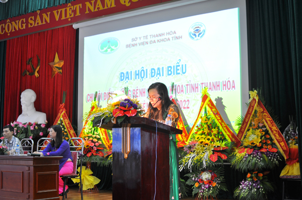 Đồng chí Đặng Thị Thu – Chủ tịch Chi hội Điều dưỡng BV phát biểu tại Đại hội