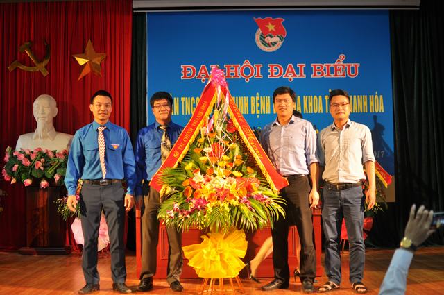 Đồng chí Đỗ Văn Liêm – Bí thư Đảng ủy, PGĐ Bệnh viện và đồng chí Hoàng Mạnh Cường – UVBCH Đảng bộ Khối, UVBTV tỉnh Đoàn, Bí thư Đoàn khối các cơ quan tỉnh Thanh Hóa tặng hoa chúc mừng BCH Đoàn Bệnh viện nhiệm kỳ 2017-2019