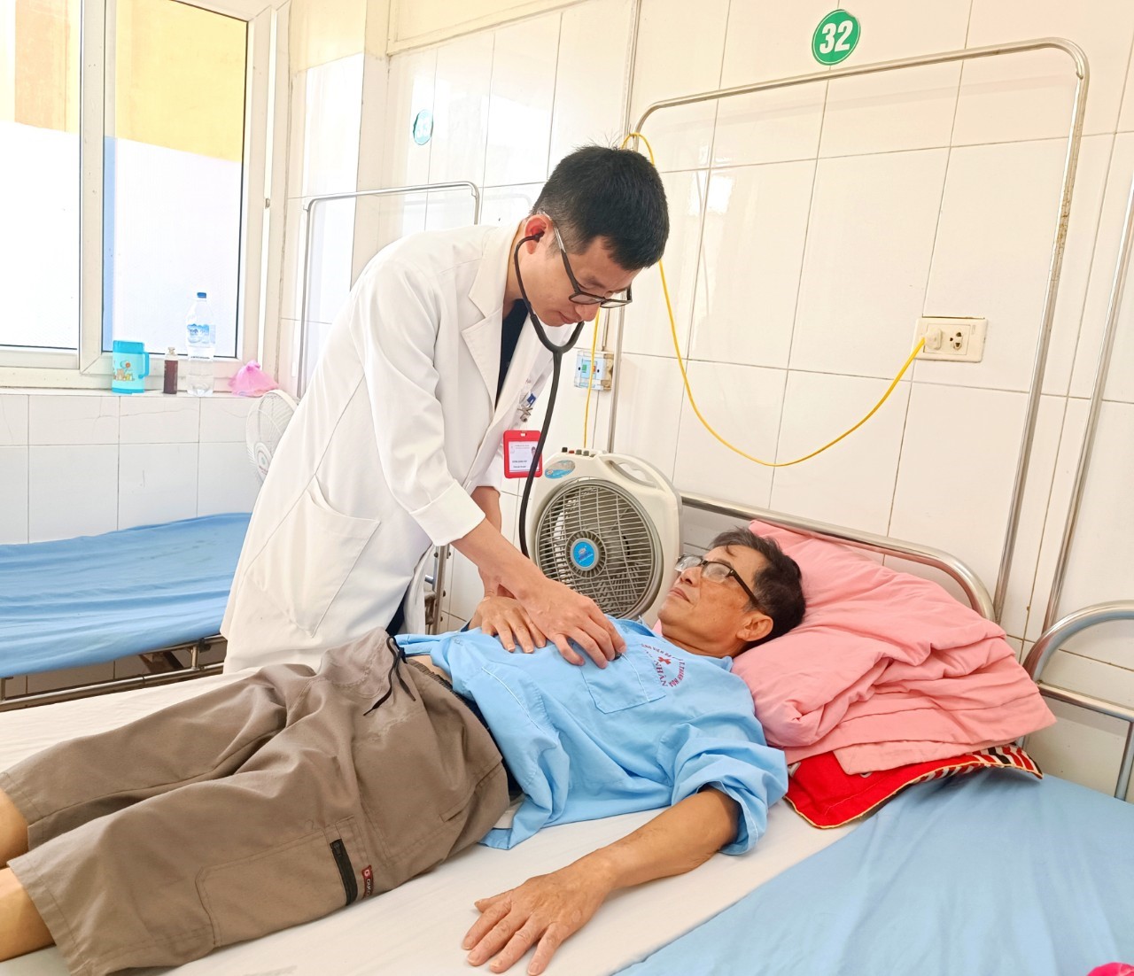 Bác sĩ thăm khám và tư vấn các biện pháp bảo vệ sức khỏe cho bệnh nhân sau khi xuất viện