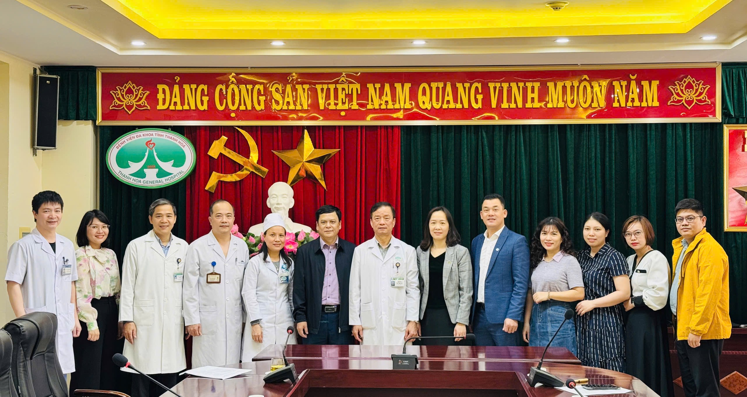 Bệnh viện Đa khoa tỉnh Thanh Hóa chụp ảnh lưu niệm cùng đoàn làm việc Bệnh viện Y Dược Hải Phòng