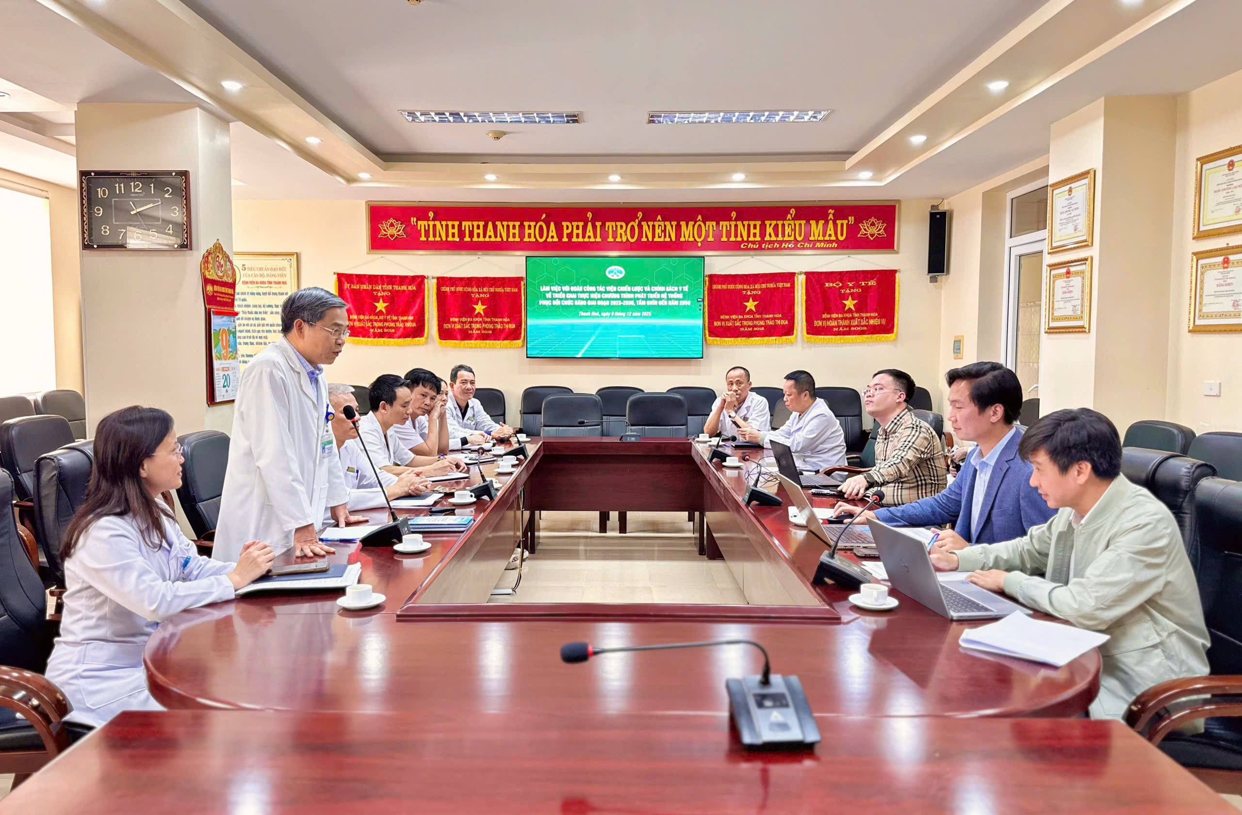 Tham dự buổi làm việc, về phía Bệnh viện Đa khoa tỉnh Thanh Hóa có BSCKII Dương Thị Thanh – Phó Giám đốc Bệnh viện; đại diện các phòng chức năng và lãnh đạo một số đơn vị liên quan cùng tham gia trao đổi, thảo luận theo nội dung kế hoạch của Đoàn công tác. Phát biểu tại buổi làm việc, BSCKII Dương Thị Thanh – Phó Giám đốc Bệnh viện đã gửi lời cảm ơn đến Đoàn công tác đã dành thời gian làm việc tại Bệnh viện. Phó Giám đốc Dương Thị thanh cũng bày tỏ mong muốn được lắng nghe các ý kiến đánh giá, góp ý chuyên môn từ Đoàn công tác, làm cơ sở để bệnh viện xây dựng kế hoạch hành động phù hợp, hiệu quả và bền vững hơn trong giai đoạn tiếp theo.