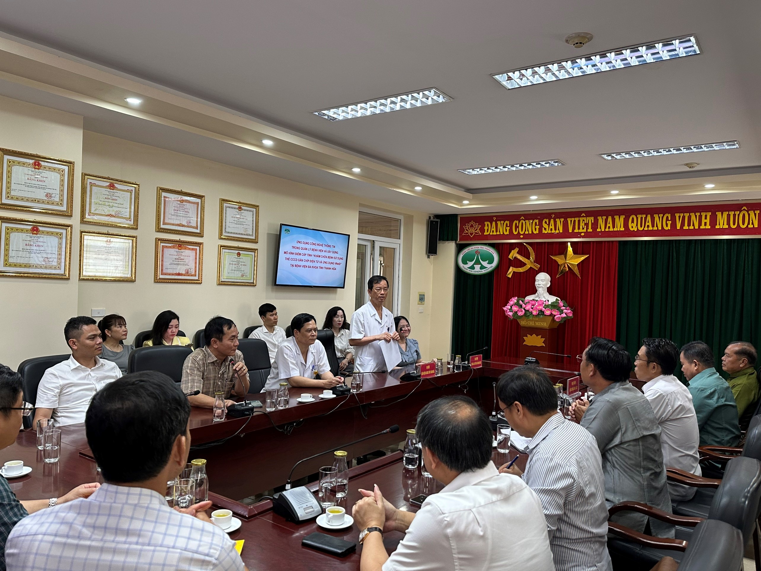 Tại buổi làm việc, BSCKII Lê Văn Sỹ đã báo cáo về ứng dụng công nghệ thông tin trong quản lý Bệnh viện và xây dựng mô hình điểm cấp tỉnh về sử dụng CCCD gắn chíp và VNeID trong KCB tại Bệnh viện Đa khoa tỉnh Thanh Hoá.