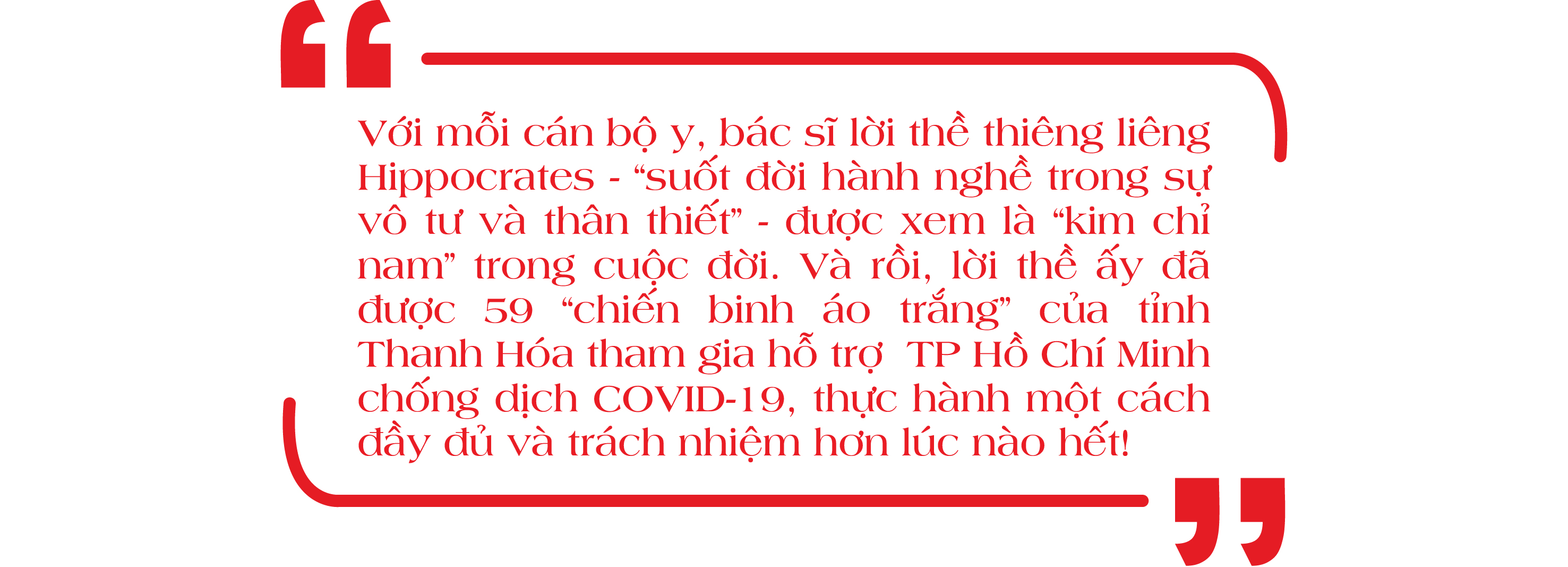 Nhận xét về họ, Giám đốc Bệnh viện Đa khoa tỉnh Thanh Hóa, Thầy thuốc Nhân dân, bác sĩ chuyên khoa II Lê Văn Sỹ khẳng định: Thực hiện lời kêu gọi toàn dân, toàn quân chung tay phòng chống dịch COVID-19 của Chính phủ, Bộ Y tế, tỉnh Thanh Hoá, nhiều “chiến binh áo trắng” đã xung phong lên đường vào tâm dịch. Họ đều là những cán bộ y tế có kinh nghiệm, có bản lĩnh vững vàng, có tinh thần trách nhiệm cao, có trình độ chuyên môn tốt, có tình thương và lòng nhân ái với bệnh nhân. Họ đã hy sinh những quyền lợi cá nhân để xung phong lên đường vào tâm dịch mà không quản ngại khó khăn, vất vả, nguy hiểm.