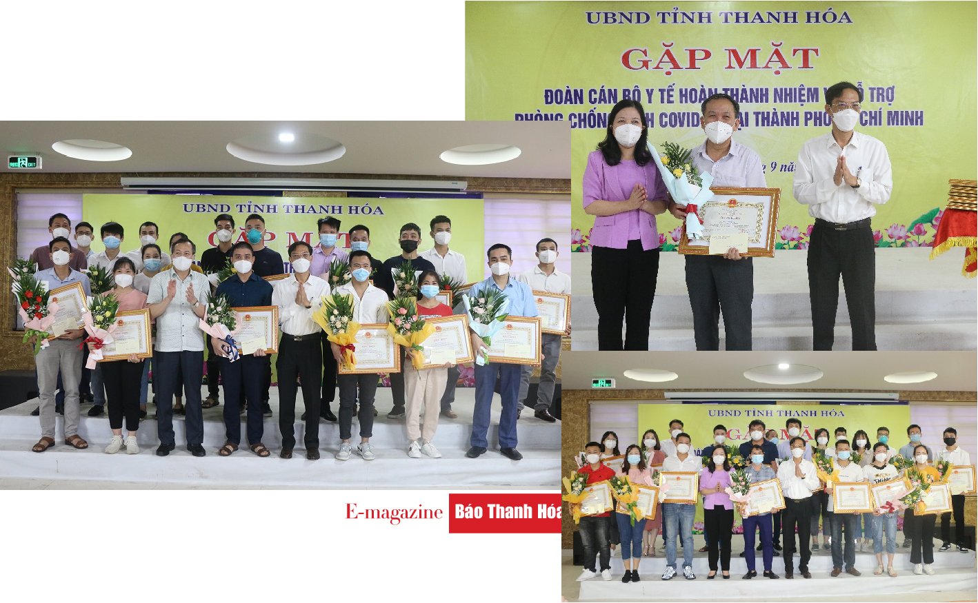 Thầy thuốc Ưu tú, bác sĩ chuyên khoa II Nguyễn Viết Hải, Phó Giám đốc Bệnh viện Nhi Thanh Hoá, Trưởng đoàn công tác, cho biết: Đoàn cán bộ y tế Thanh Hóa đã làm việc theo tinh thần trách nhiệm cao nhất, góp phần cứu sống và điều trị khỏi bệnh cho rất nhiều bệnh nhân, được ngành Y tế và người dân TP Hồ Chí Minh đánh giá cao. Sau khi hoàn thành nhiệm vụ, được trở về, vẫn có 1 số anh chị em trong đoàn xung phong ở lại để tiếp tục cùng TP Hồ Chí Minh và các tỉnh phía Nam phòng chống dịch COVID-19. Những “chiến binh ” trở về mang theo rất nhiều kinh nghiệm quý, cách làm hay trong công tác phòng, chống dịch COVID-19. Đây sẽ là những nguồn nhân lực quý giá cho các cơ sở y tế trong công tác điều trị bệnh nhân COVID-19.