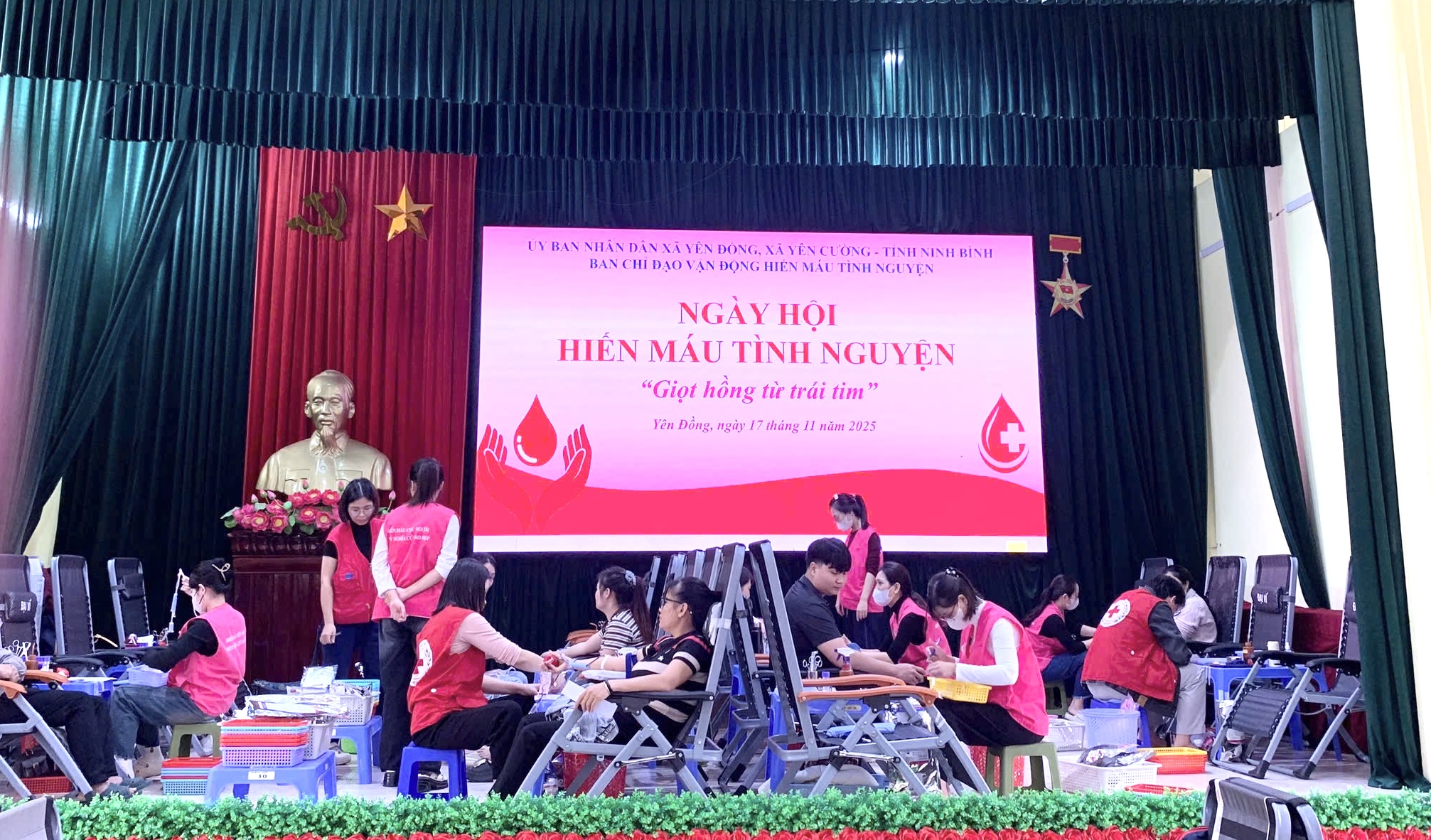Ngày 17/11, tại UBND xã Yên Đồng, tỉnh Nam Định (cũ), nay thuộc tỉnh Ninh Bình, Trung tâm Huyết học – Truyền máu, Bệnh viện Đa khoa tỉnh Thanh Hóa phối hợp với Hội Chữ thập đỏ tỉnh Ninh Bình tổ chức chương trình hiến máu tình nguyện “Giọt hồng từ trái tim”.