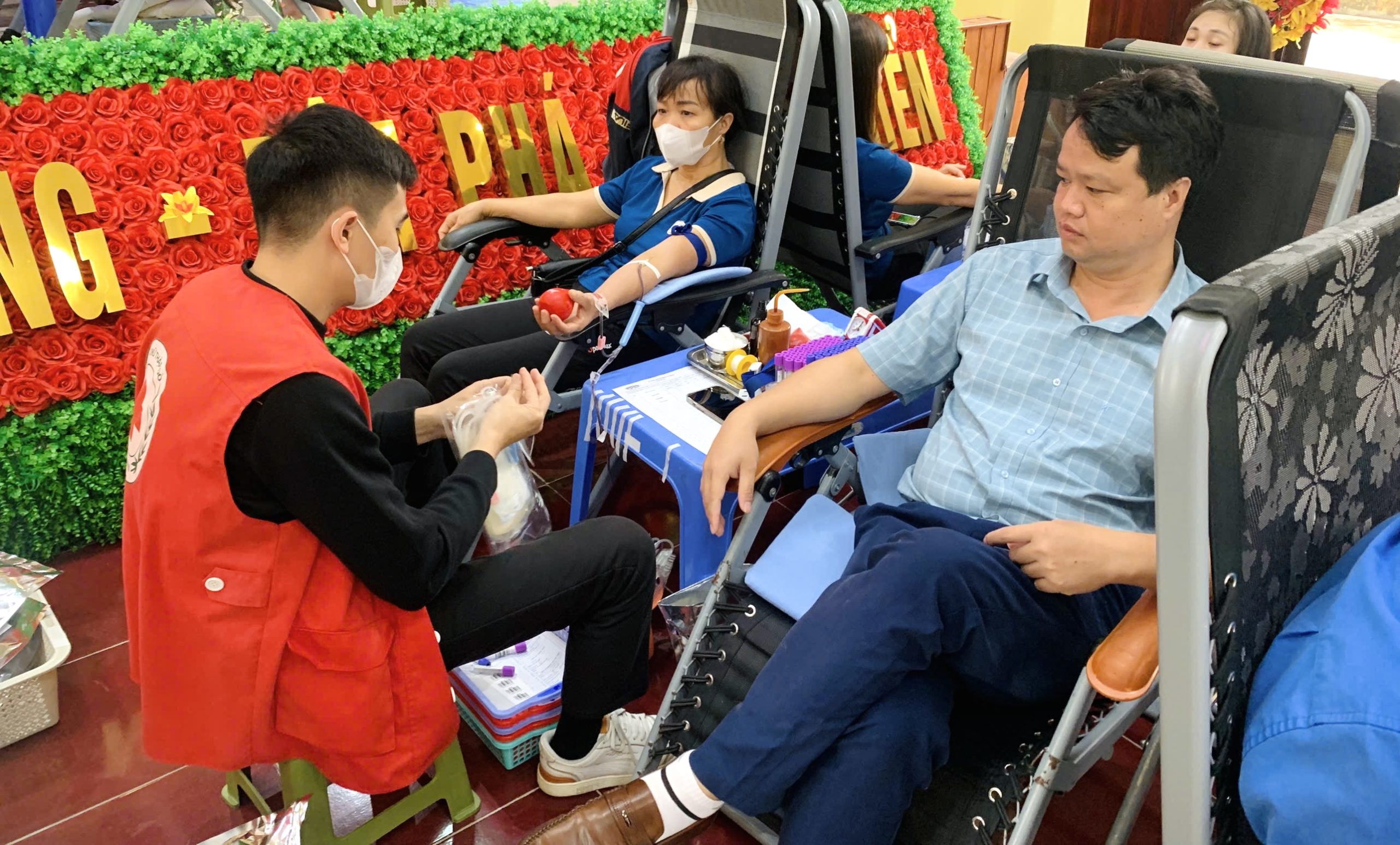 Đông đảo đoàn viên, thanh niên, cán bộ, công chức, viên chức, lực lượng vũ trang và người dân tham gia hiến máu.