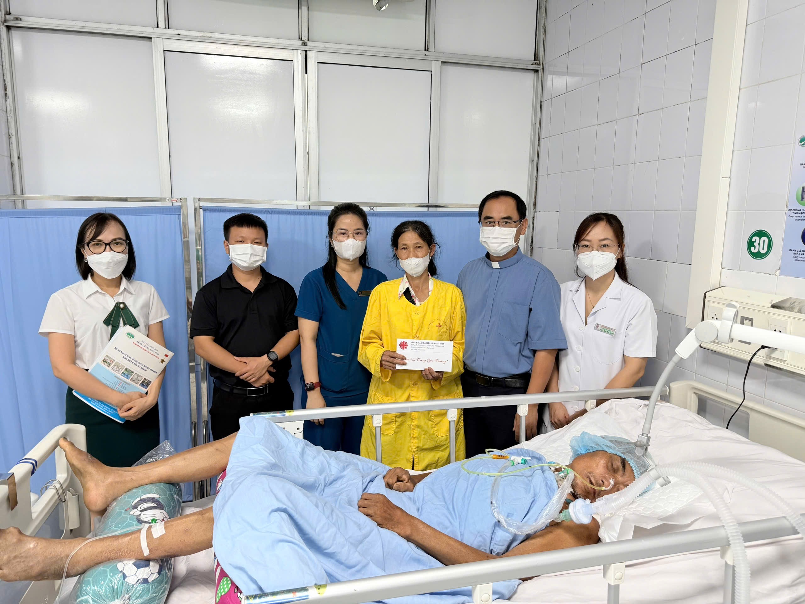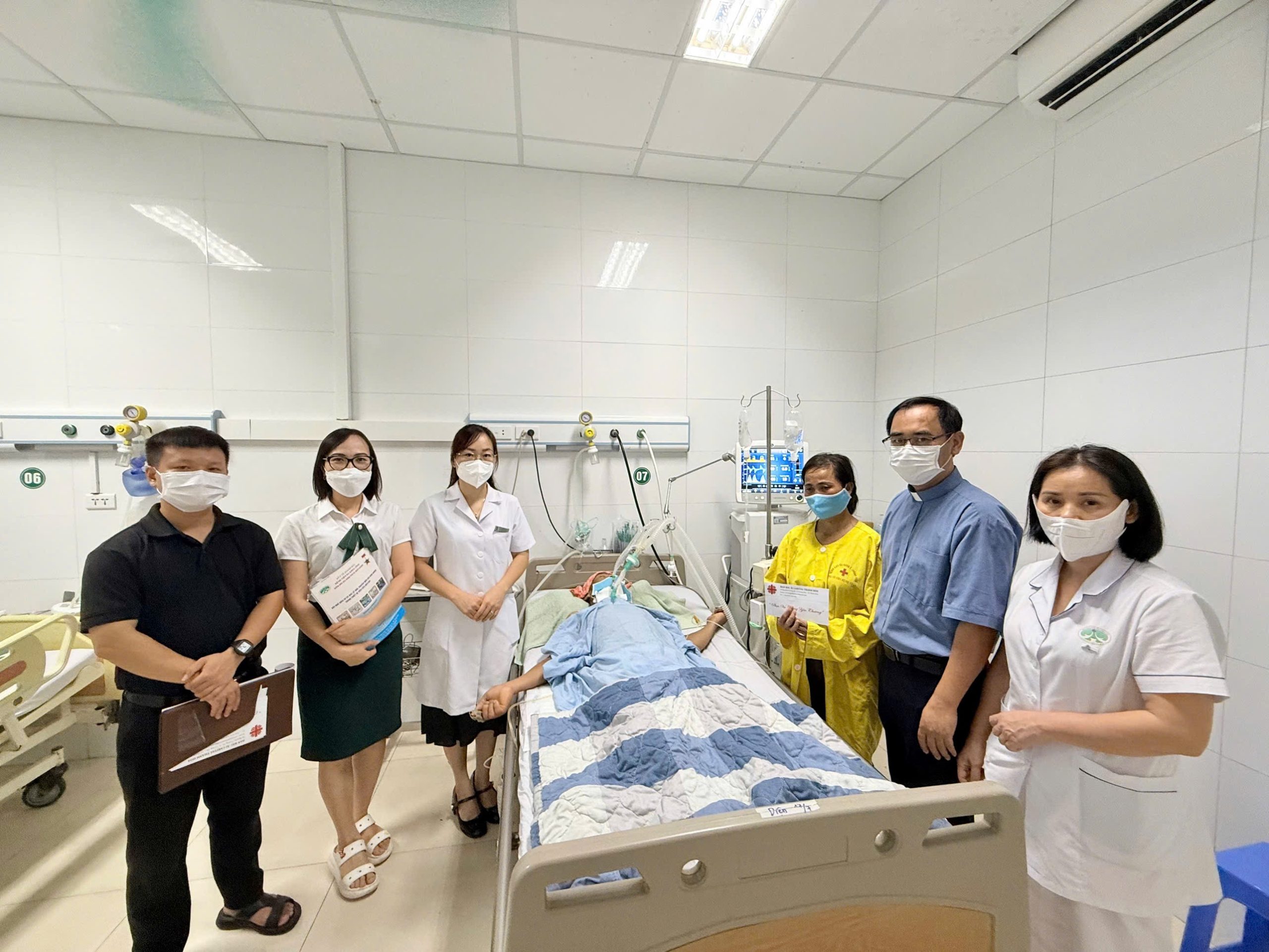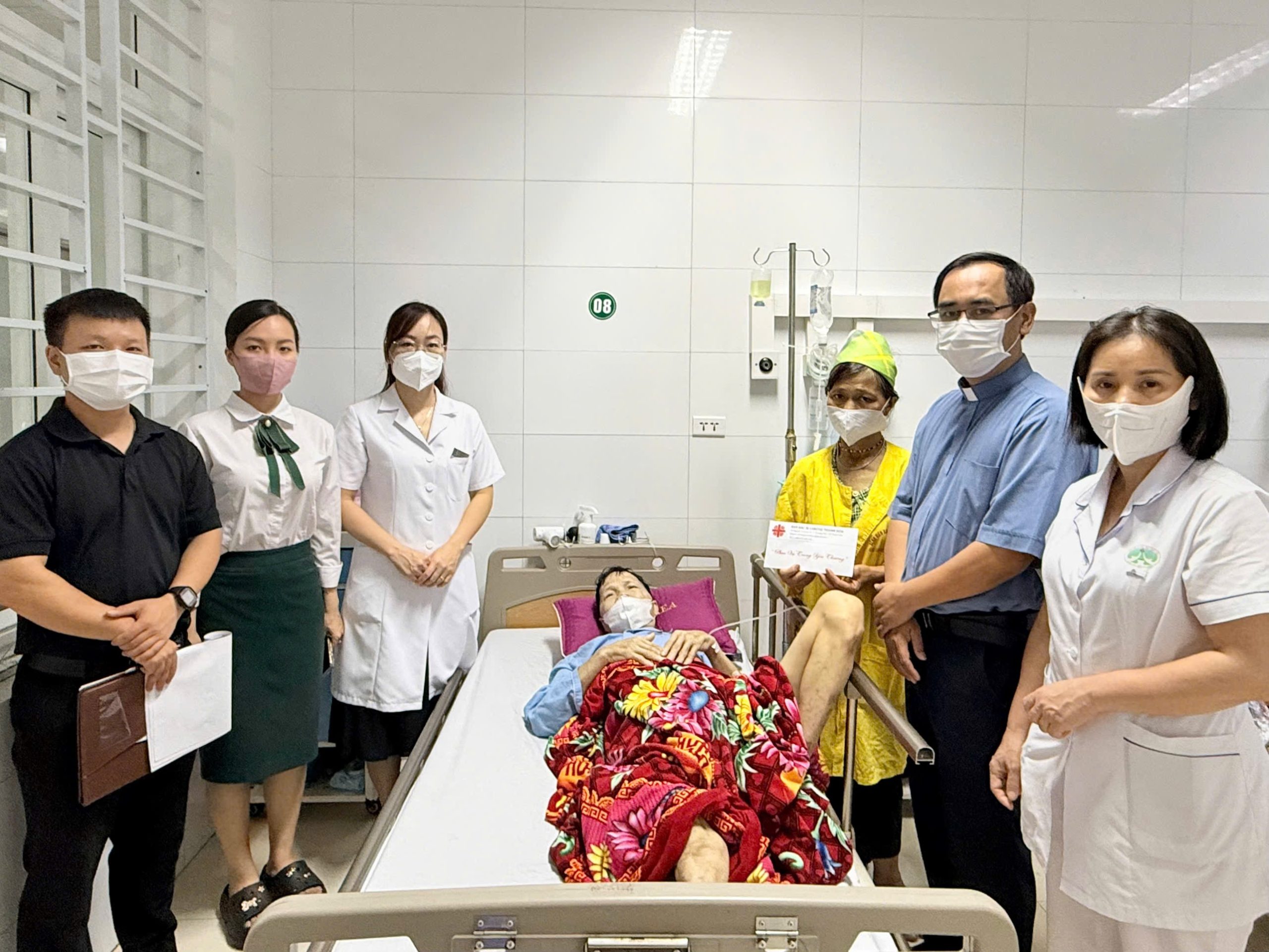 Linh mục Nguyễn Văn Thường – Giám đốc Caritas Thanh Hóa, đại diện lãnh đạo phòng CTXH thăm hỏi, động viên và tặng quà cho bệnh nhân có hoàn cảnh khó khăn