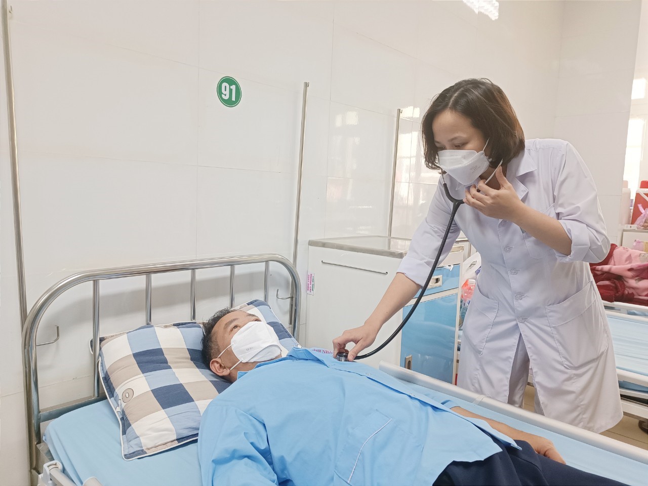 Bác sỹ thăm khám cho bệnh nhân sau khi can thiệp nút mạch điều trị ung thư gan
